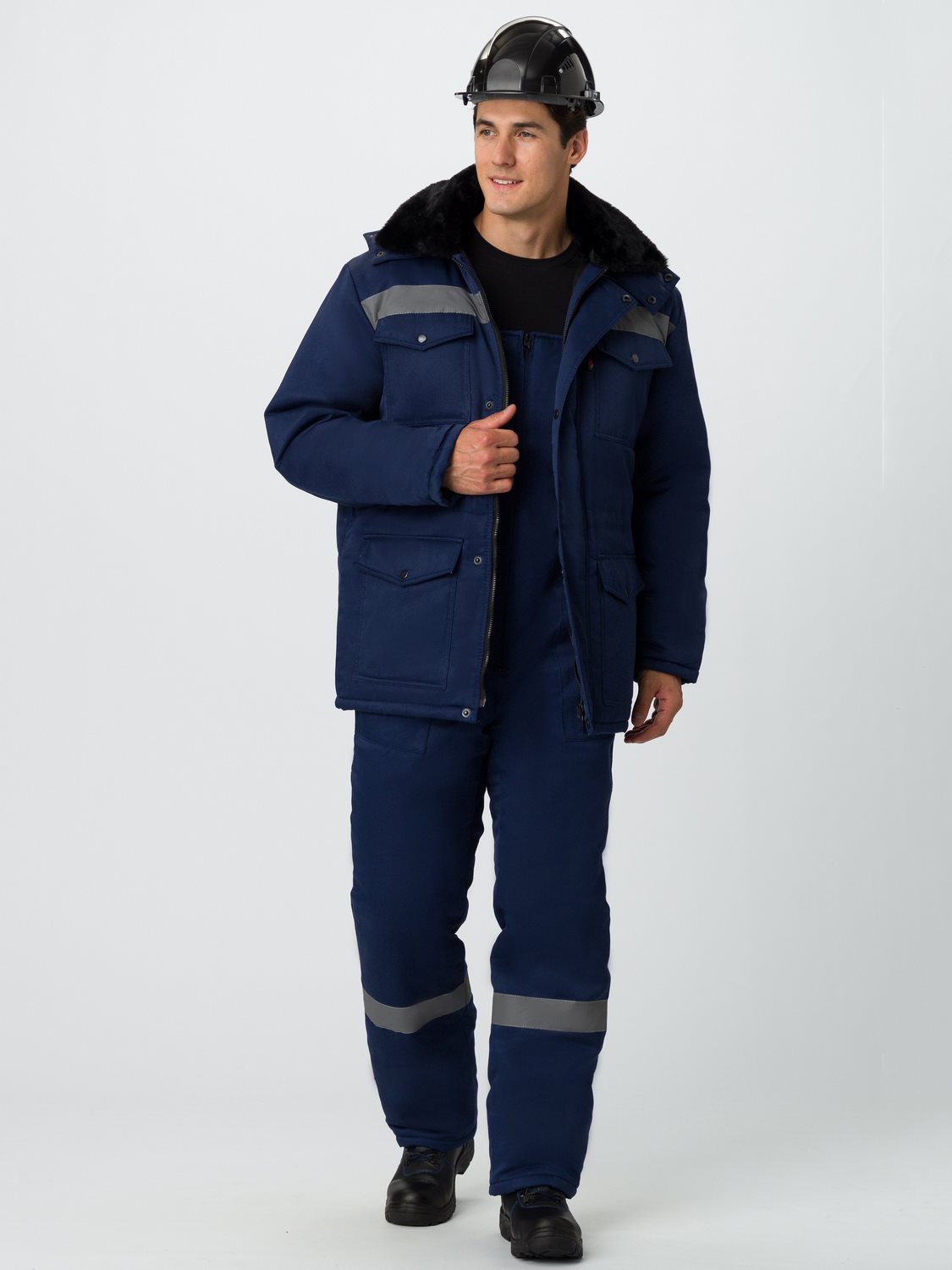 - с центральной застежкой молнией и утепленной ветрозащитной планкой, застегивающейся на четыре кнопки