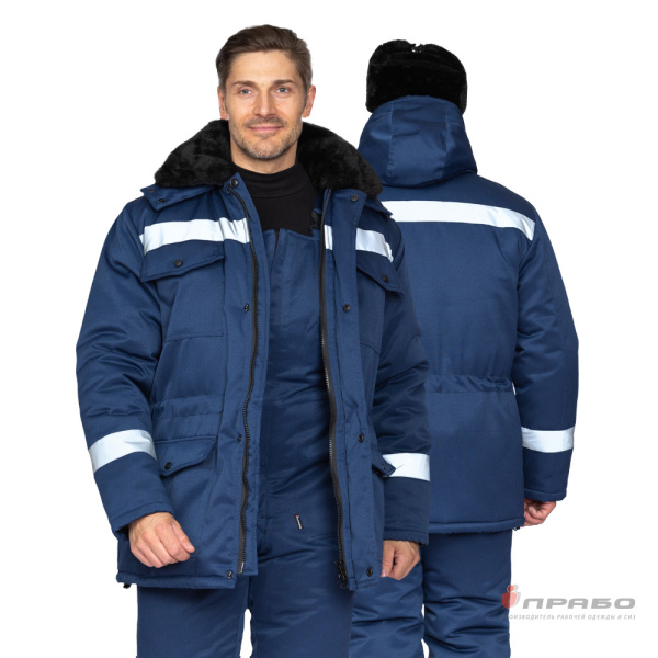 Куртка: с центральной застёжкой на двухзамковую молнию, отложным воротником и капюшоном, с утеплённой ветрозащитной планкой сверху молнии и дополнительной ветрозащитной планкой под молнией. Такая конструкция эффективно защищает от продувания и потери тепла. По линии талии и низу куртка регулируется по объёму благодаря кулиске с фиксаторами и наконечниками, обеспечивая дополнительную защиту спины от холода и ветра и сохраняя тепло в пододежном пространстве. Рукава втачные, двухшовные с внутренними трикотажными манжетами, которые защищают от попадания пыли, грязи, снега и ветра внутрь изделия. Воротник из искусственного меха может использоваться в двух положениях: как отложной и как воротник-стойка (воротник фиксируется в поднятом положении с помощью хлястика на пуговице).