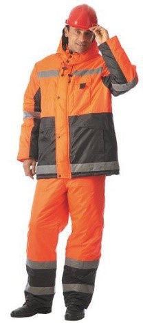 Рекомендуется использовать для защиты от пониженных температур для работы в условиях плохой видимости благодаря световозвращающим полосам рабочим строительных специальностей, сотрудникам муниципальных и дорожных служб. Костюм состоит из удлиненной куртки и полукомбинезона с регулируемыми бретелями. Широкая световозвращающая полоса проходит по низу куртки, по кокетке, рукаву, низу полукомбинезона. Оснащен рядом многофункциональных карманов, в т.ч. внутренних и карманов для средств связи. Центральная застежка на молнию, на куртке закрыта планкой, фиксирующейся на копках. Ветрозащитная юбка, трикотажный манжет по низу рукавов, надежно защищают от проникновения холода под куртку. Застежка полукомбинезона и низ брючин на молнии с ветрозащитной планкой.