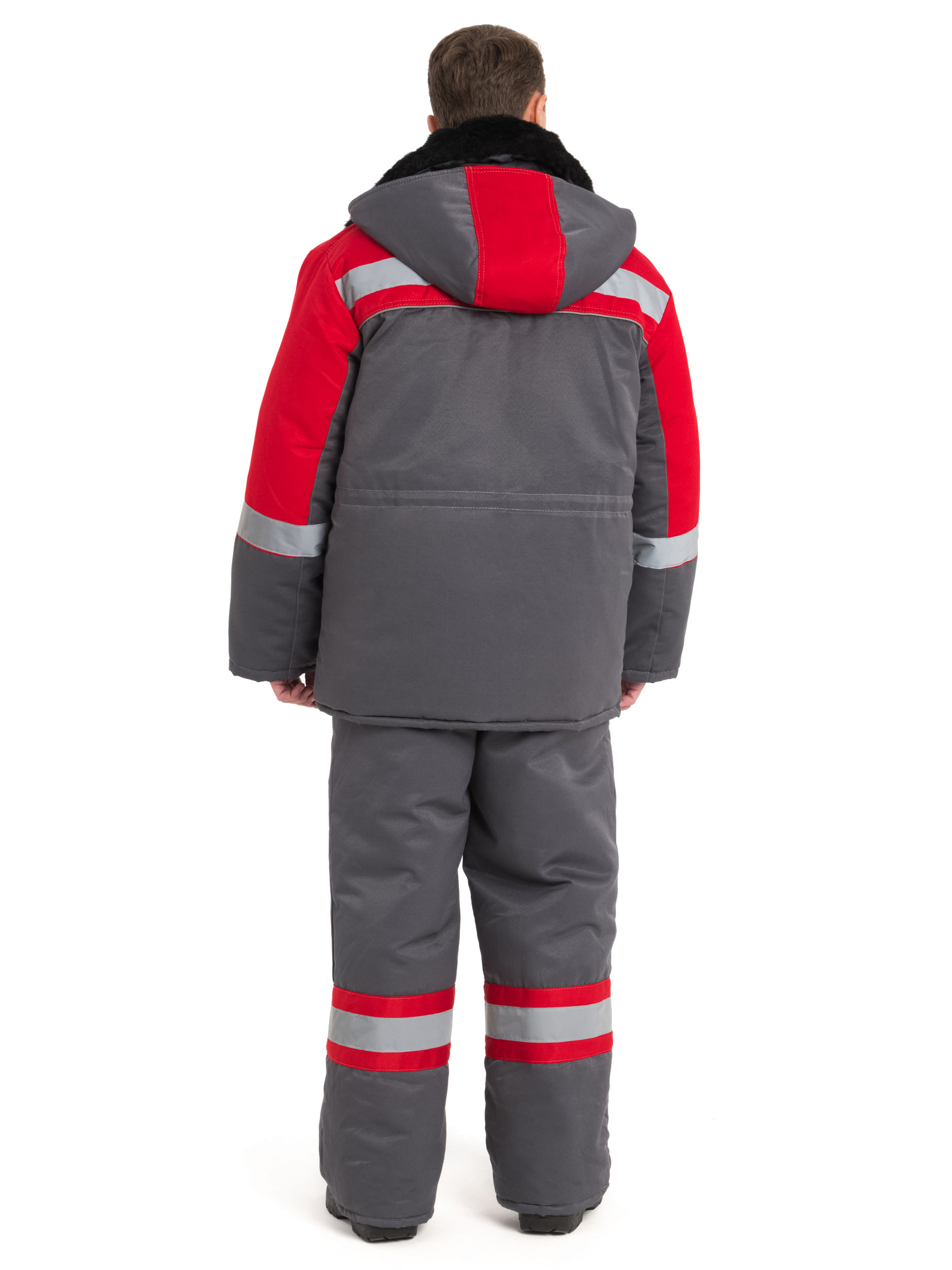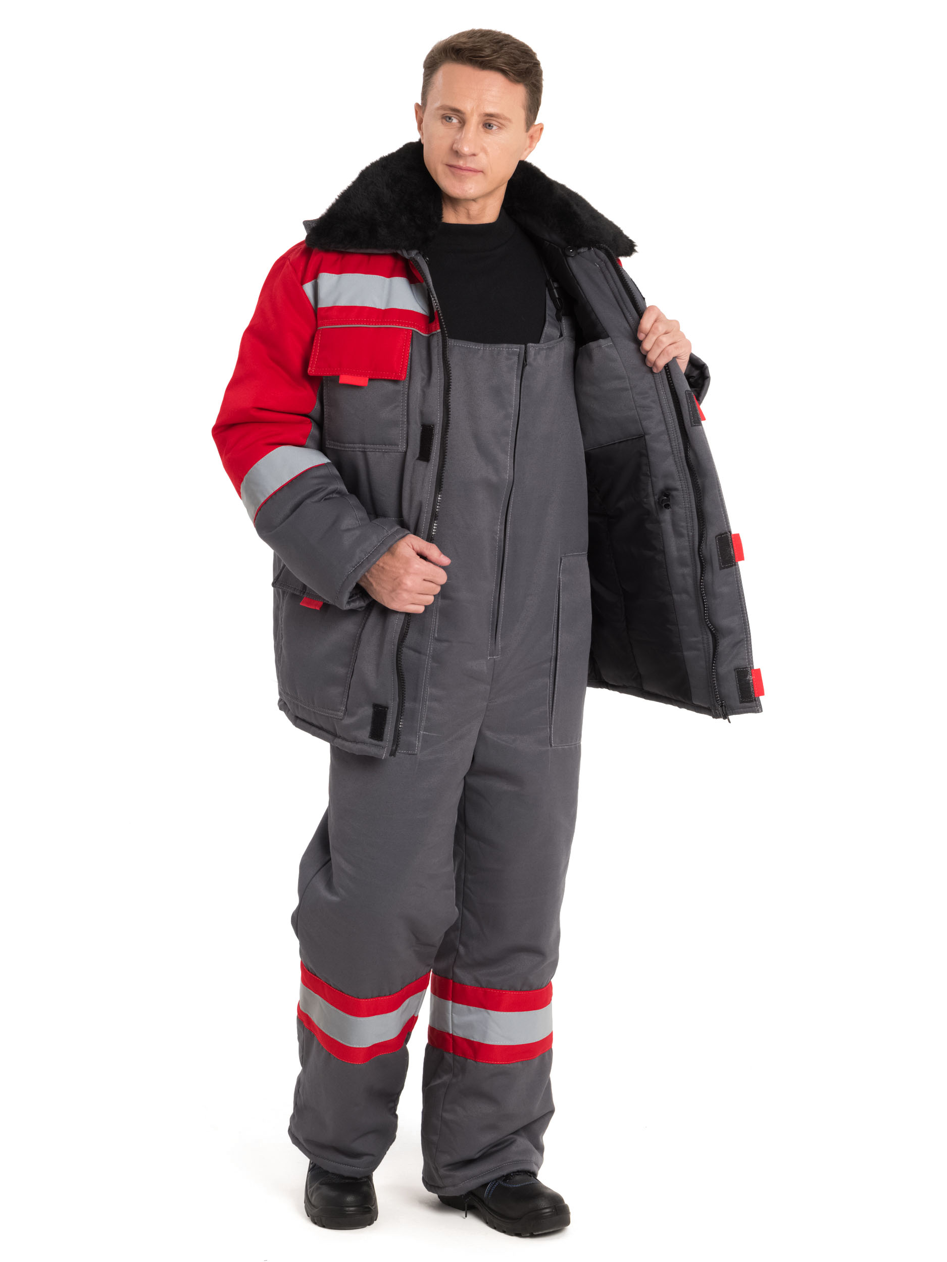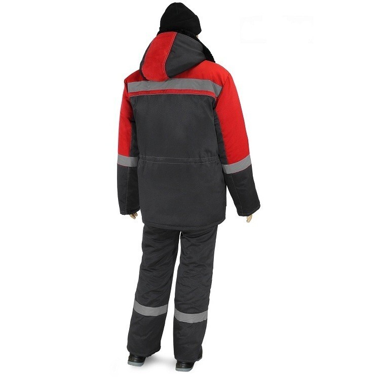 Костюм состоит из куртки и полукомбинезона. Куртка со световозвращающими полосами, с центральной бортовой застежкой на молнию, с ветрозащитным клапаном на липучках. Вместительные утепленные нагрудные и боковые карманы защищены клапанами на липучках. Рукав прямой с трикотажной манжетой. Куртка со съемным меховым воротником на пуговицах и съемным капюшоном на кнопках. Объем талии регулируется кулисой со шнуром. По низу полукомбинезона проходит широкая световозвращающая полоса. В костюме «НОВА» применена ветрозащитная полиэфирная ткань «Барьер» со специальной обработкой, придающей ткани очень низкий порог воздухопроницаемости. Особое переплетение ткани «Барьер» имеет свойство удержания утеплителя, то есть не позволяет аэрофайберу пробивать основную ткань верха.