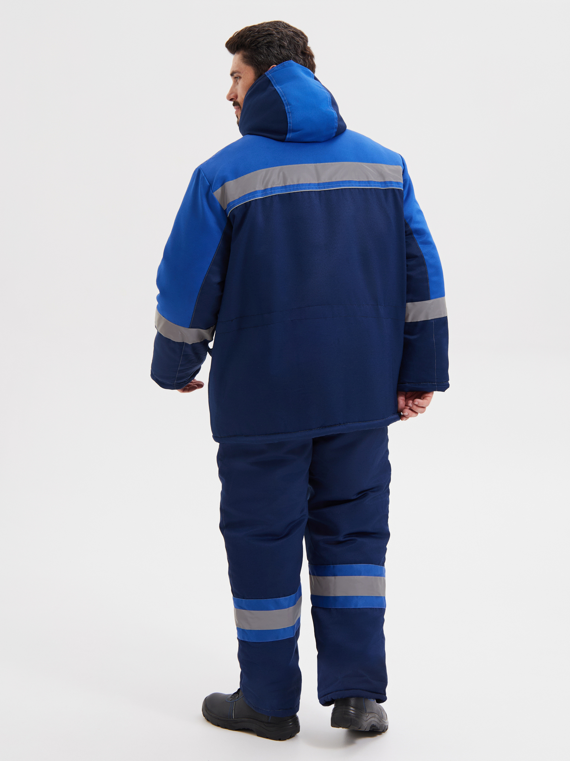 Костюм состоит из куртки и полукомбинезона. Куртка со световозвращающими полосами, с центральной бортовой застежкой на молнию, с ветрозащитным клапаном на липучках. Вместительные утепленные нагрудные и боковые карманы защищены клапанами на липучках. Рукав прямой с трикотажной манжетой. Куртка со съемным меховым воротником на пуговицах и съемным капюшоном на кнопках. Объем талии регулируется кулисой со шнуром. По низу полукомбинезона проходит широкая световозвращающая полоса. В костюме «НОВА» применена ветрозащитная полиэфирная ткань «Барьер» со специальной обработкой, придающей ткани очень низкий порог воздухопроницаемости. Особое переплетение ткани «Барьер» имеет свойство удержания утеплителя, то есть не позволяет аэрофайберу пробивать основную ткань верха.