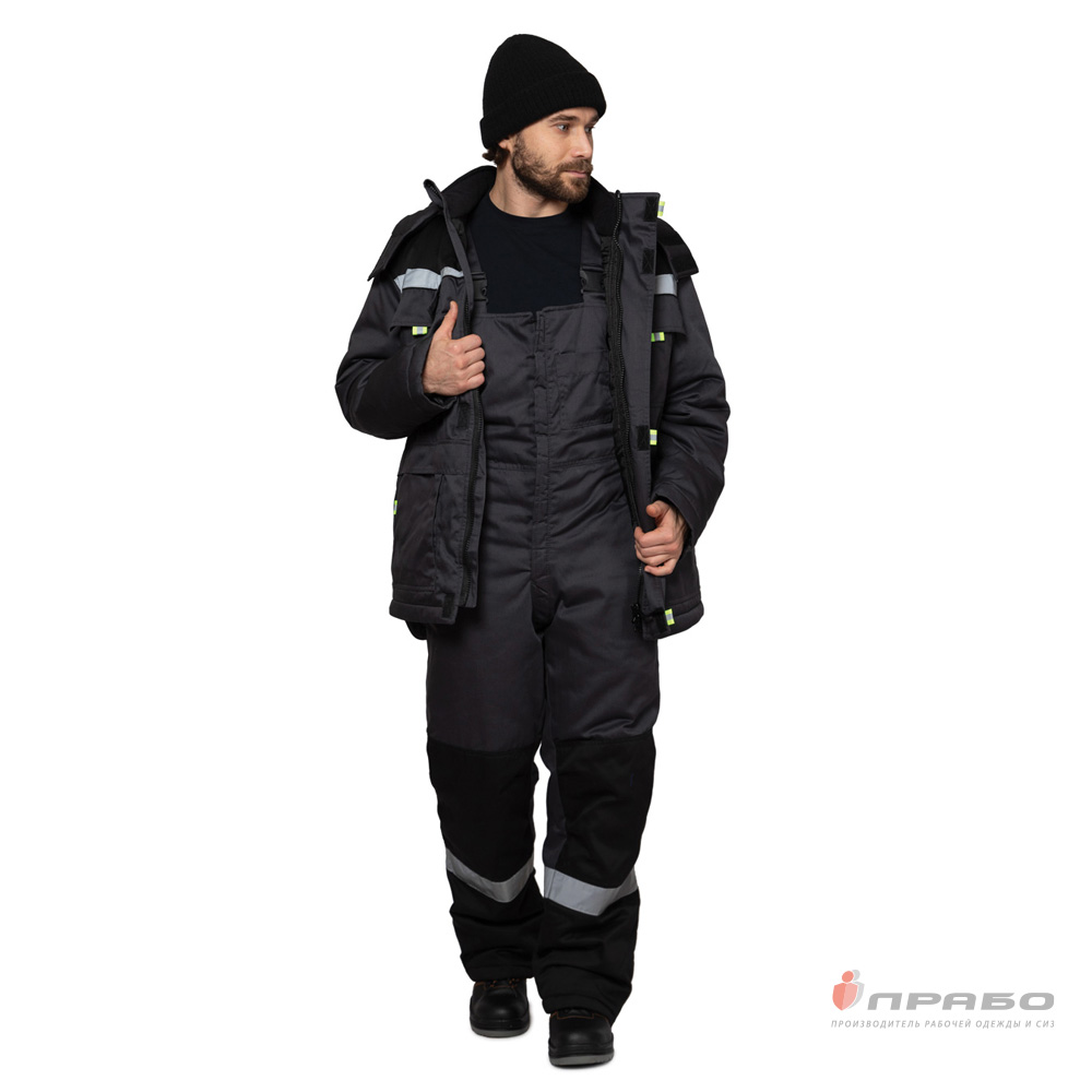 Костюм мужской утеплённый "Профессионал 2" в серо-чёрном сочетании обеспечит комфорт и удобство при работе в холодное время года благодаря качественным используемым материалам и функциональному крою. Рабочий зимний костюм предназначен для защиты от общепроизводственных загрязений при пониженных температурах (относится ко 2 классу защиты — III климатическому поясу (регион II). Наличие светоотражающих элементов обеспечит дополнительную защиту в условиях плохой видимости.