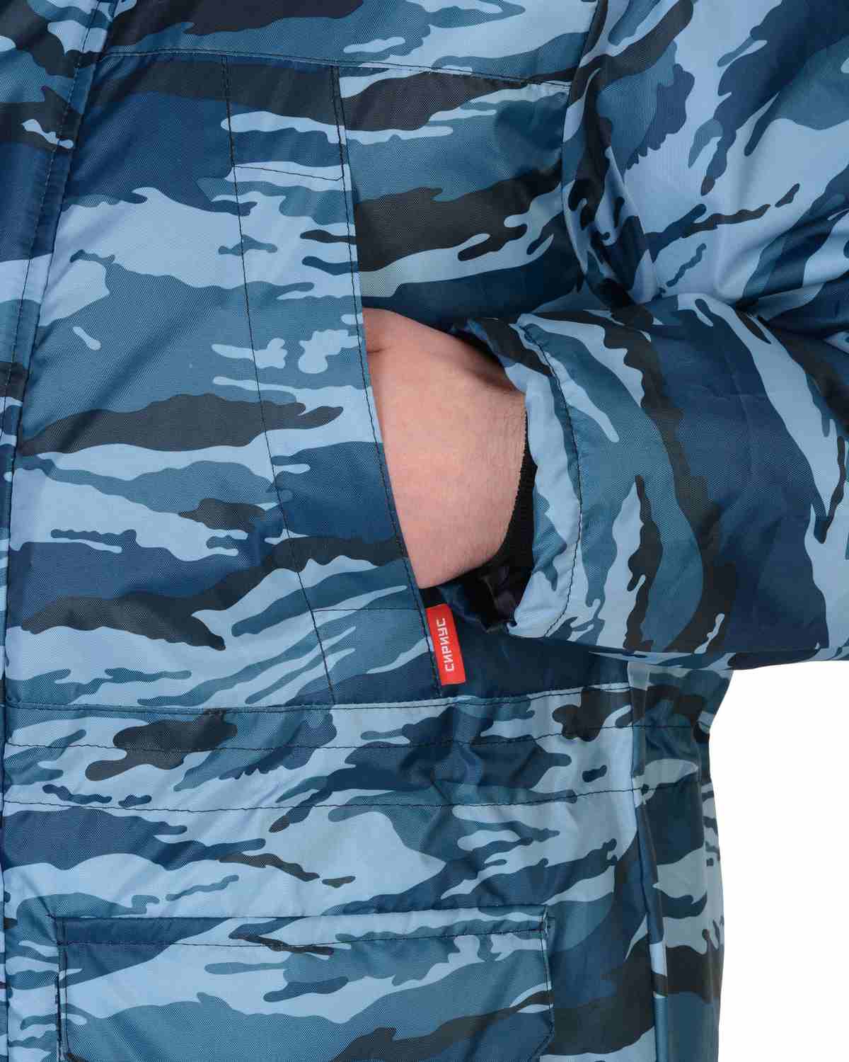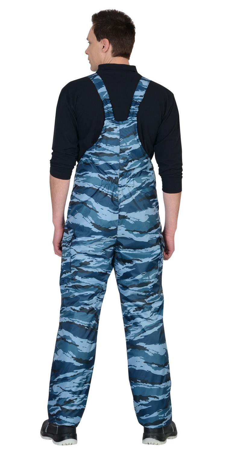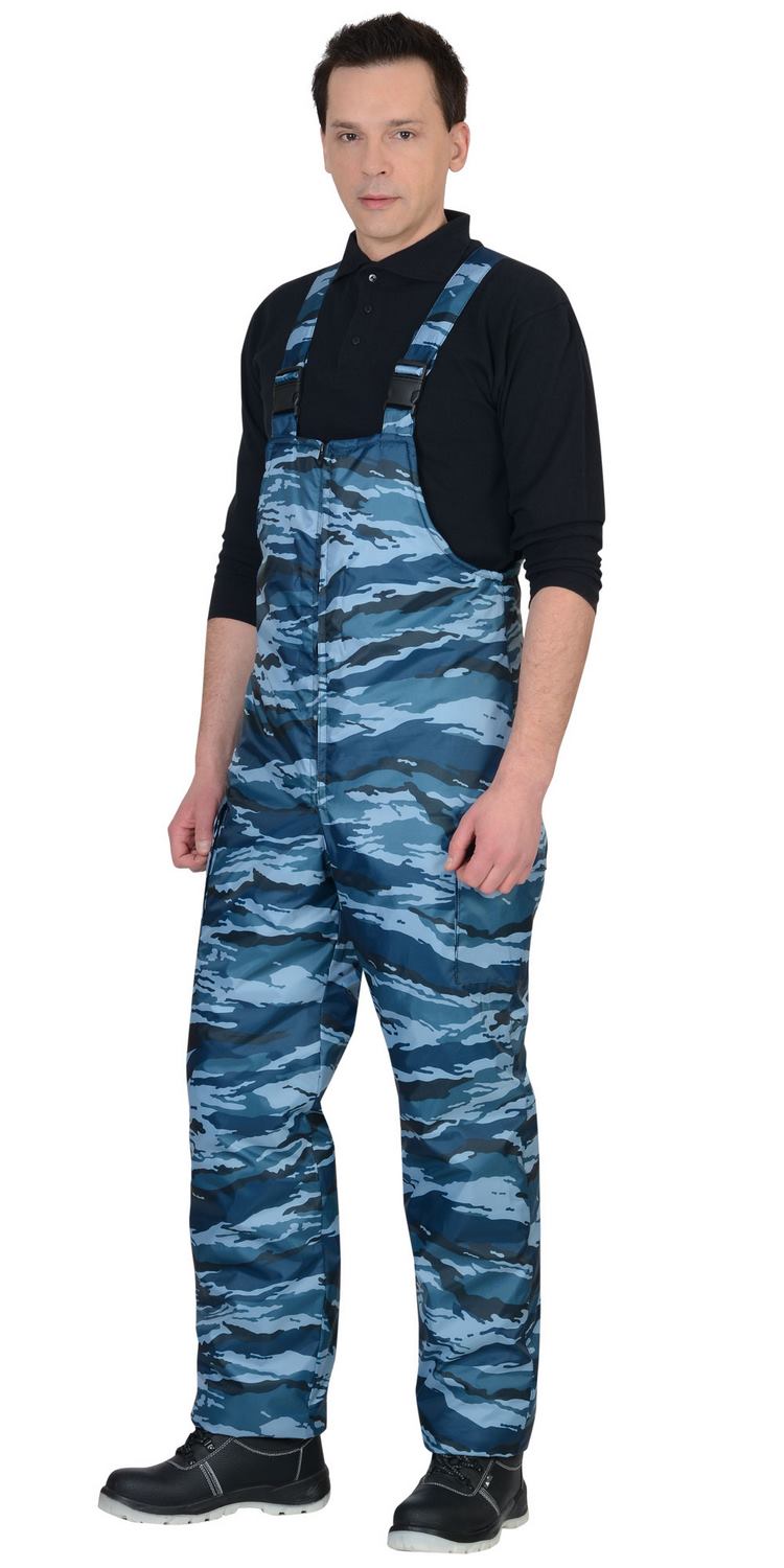 Костюм мужской утеплённый: куртка длинная, полукомбинезон. Куртка на молнии с ветрозащитным клапаном, съёмным капюшоном, накладными и прорезными карманами. Притачной меховой воротник, кулиска по линии талии, трикотажные манжеты внутри рукавов обеспечивают дополнительную теплозащиту. Полукомбинезон с центральной застёжкой-"молнией" и двумя боковыми накладными карманами.