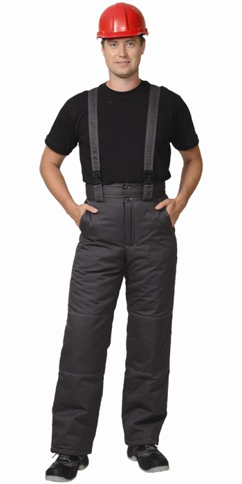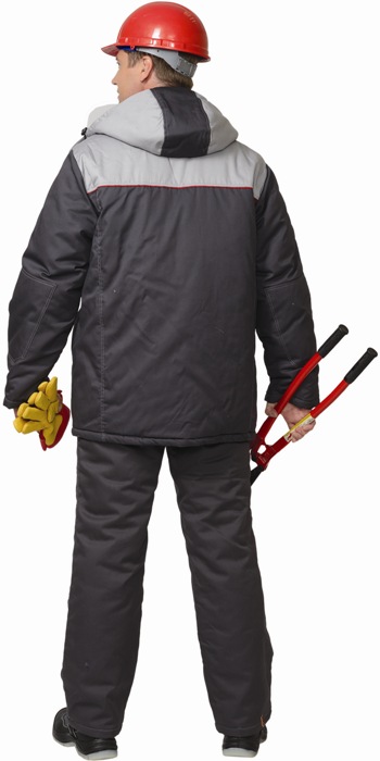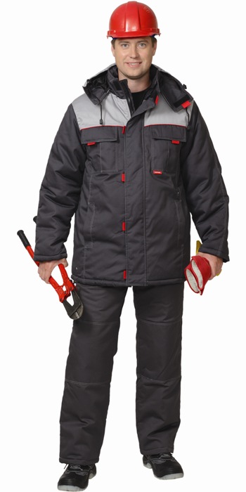 Куртка длинная, с центральной потайной застежкой на "молнию", вшивным ветразащитным клапаном на "липучках" и малыми декоротивными патами из отделочной ткани; внутренней планкой; воротник - "стойка" верхними накладными и нижними внутренними карманами, рукавами, рукава с налокотниками. Брюки с широким поясом, застегивающимся на пуговицы; с застежкой гульфика на "молнию", широкими шлевками держателями фастексов, в области колен наколенниками.