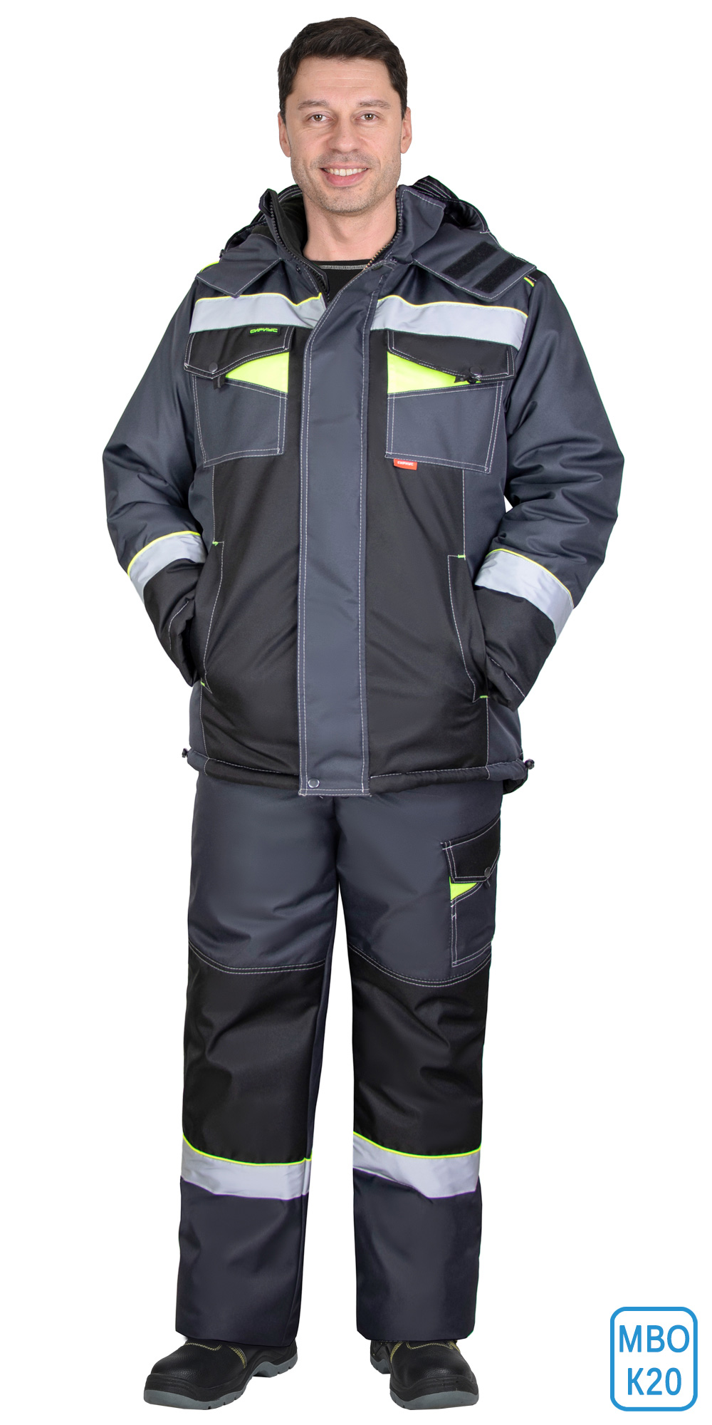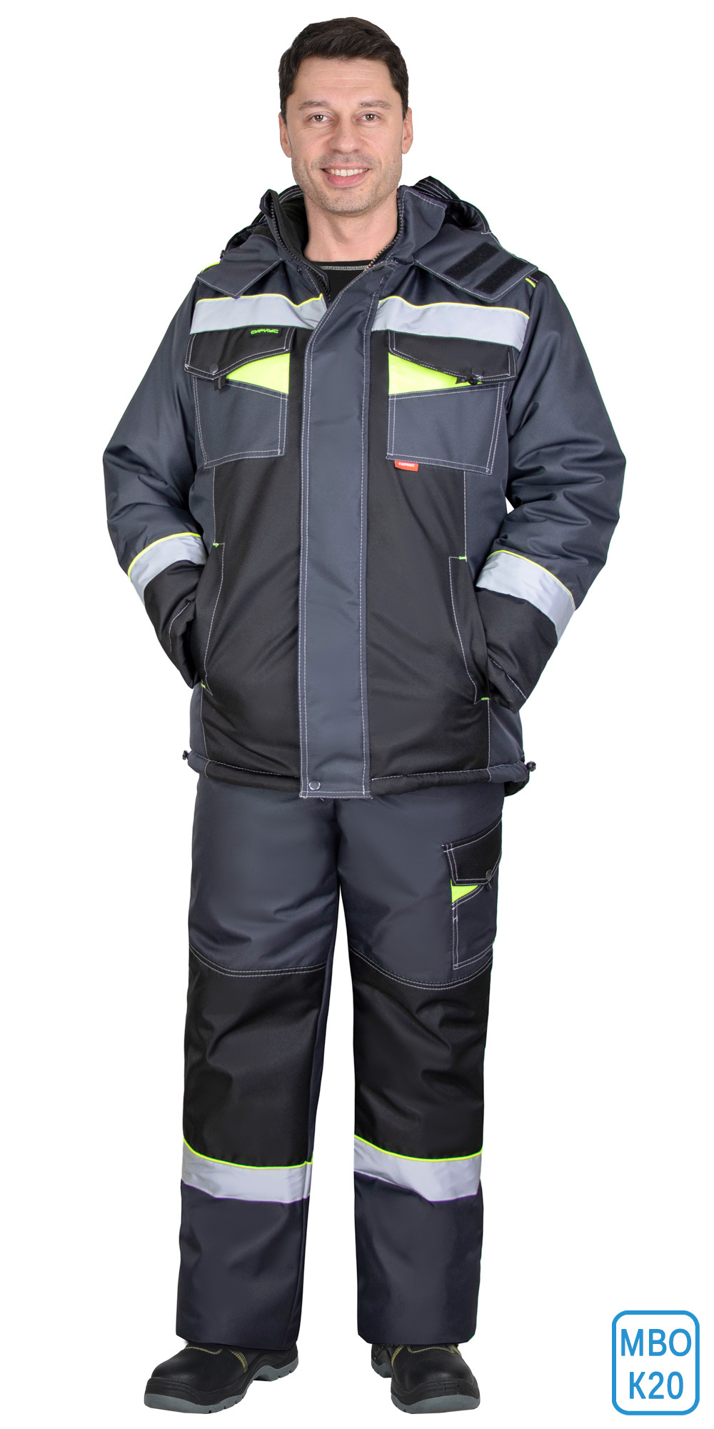 Костюм зимний, состоит из куртки и брюк. В костюме предусмотрена лента светоотражающая ш.50 мм для обеспечения сигнальной видимости.