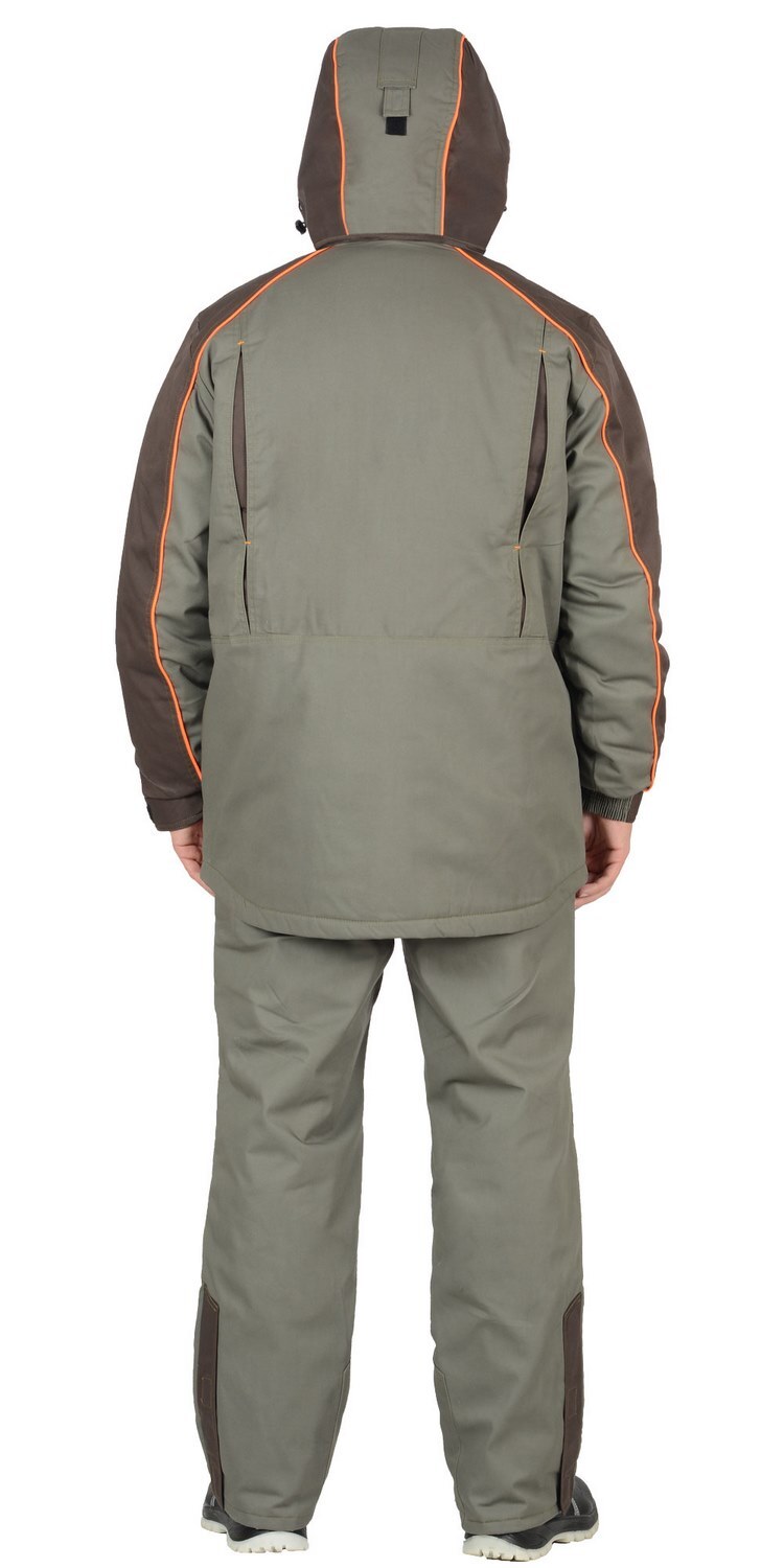 КУРТКА длинная, прямого силуэта, с притачной утепленной подкладкой, с ветрозащитной прокладкой. Центральная застежка молния, с утепленным ветрозащитным клапаном, застегивающимся на «липучки». Накладные и прорезные карманы. Регулировка по линии талии. Рукава с манжетами, частично стянутые резинкой и дополнительно регулирующиеся патами и «липучкой», с внутренними трикотажными манжетами. Спинка удлинена по нижнему срезу, средняя часть спинки с объемами для свободы движения. Воротник стойка. Капюшон пристегивается в горловину куртки на тесьму «молния». Высота капюшона регулируется хлястиком. На подкладке левой полочки большой накладной карман с горизонтальным входом, застегивающимся на тесьму «молния».