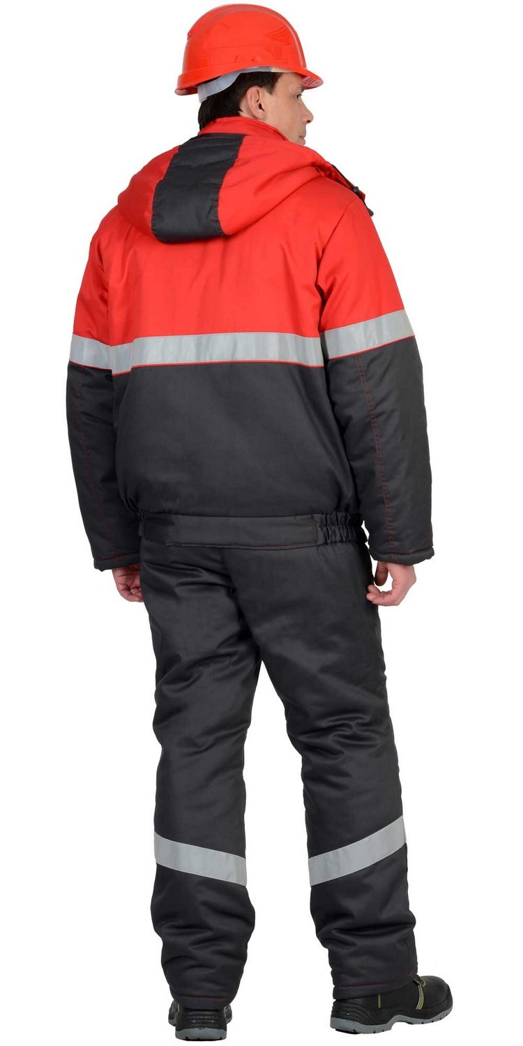 Костюм "Навигатор" состоит из куртки и полукомбинезона.Куртка прямого силуэта, укороченная; с притачной утеплённой подкладкой; с центральной застёжкой на молнию; с ветрозащитным клапаном, застегивающимся при помощи ленты «контакт»; с воротником - «стойка»; с верхними накладными карманами с клапанами и нижними карманами с боковым входом; с притачным поясом с эластичной лентой в боковых частях; с СОП на полочках, спинке и рукавах.