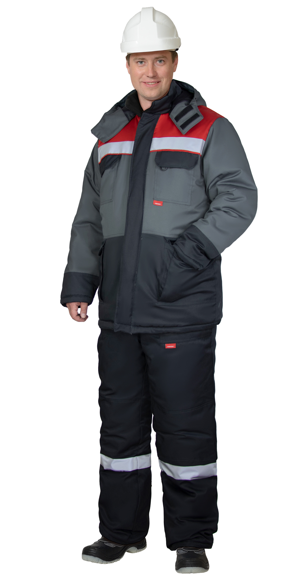 Костюм зимний состоит из куртки и брюк. В костюме – на куртке и брюках предусмотрена лента светоотражающая для обеспечения сигнальной видимости.
