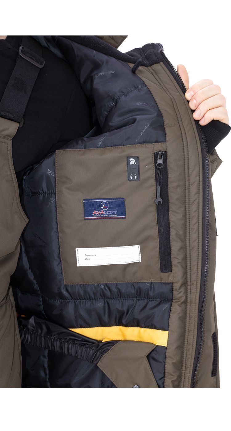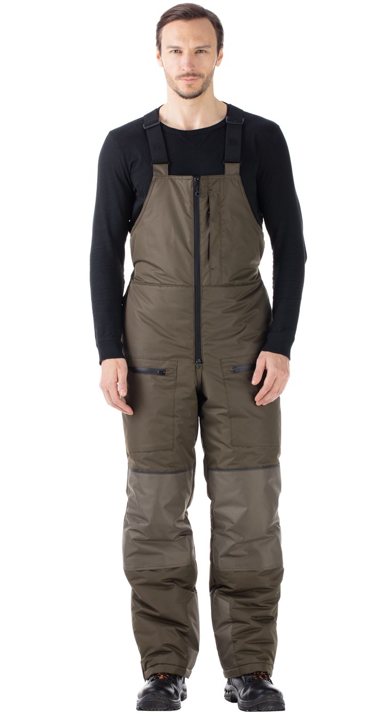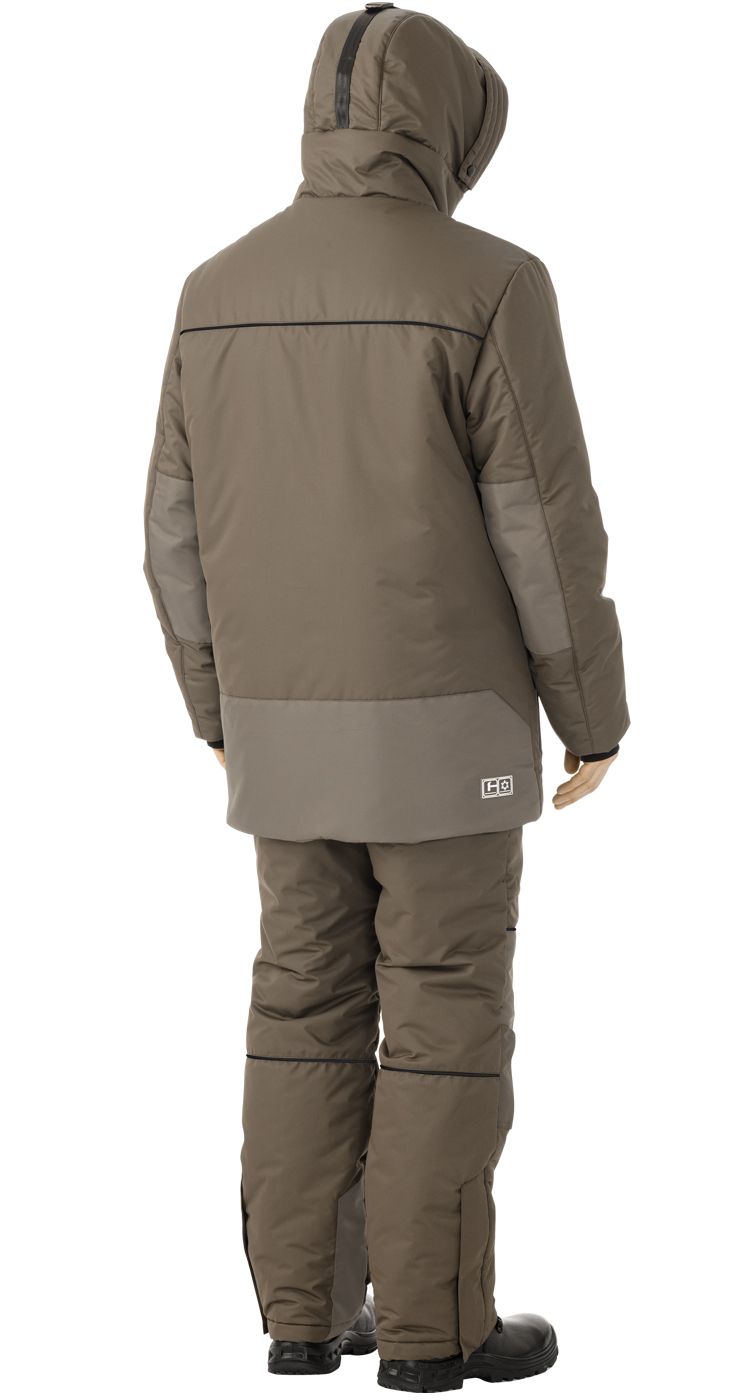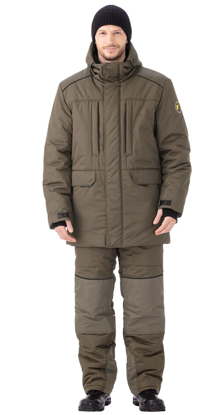 Костюм мужской утепленный, состоит из куртки и полукомбинезона из плотной курточной ткани с водоотталкивающими и ветрозащитными свойствами.