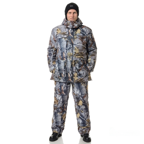 Костюм мужской утепленный "Универсал" представляет собой усовершенствованную модель камуфляжа для активного отдыха на природе, рыбалке, охоте в зимнее время года. Комплект состоит из куртки со съемной подстежкой на молнии и полукомбинезона. Камуфлированная одежда для охоты и рыбалки отлично защищает от неблагоприятных условий и служит маскировкой на местности. Костюм отшит из ткани со специальными свойствами, гарантирующими защиту от влаги и снега. Куртка с капюшоном и воротником-стойкой из флиса застегивается на двухзамковую разъемную молнию, на рукавах предусмотрены внутренние трикотажные манжеты от продувания. Удобный полукомбинезон с регулировкой на фастекс дополнен боковыми карманами. На брючинах есть внутренние манжеты. Костюм отличается хорошей износостойкостью, устойчивостью к внешним негативным факторам. Он защитит от холода и подарит максимум комфорта во время отдыха поздней осенью и зимой.