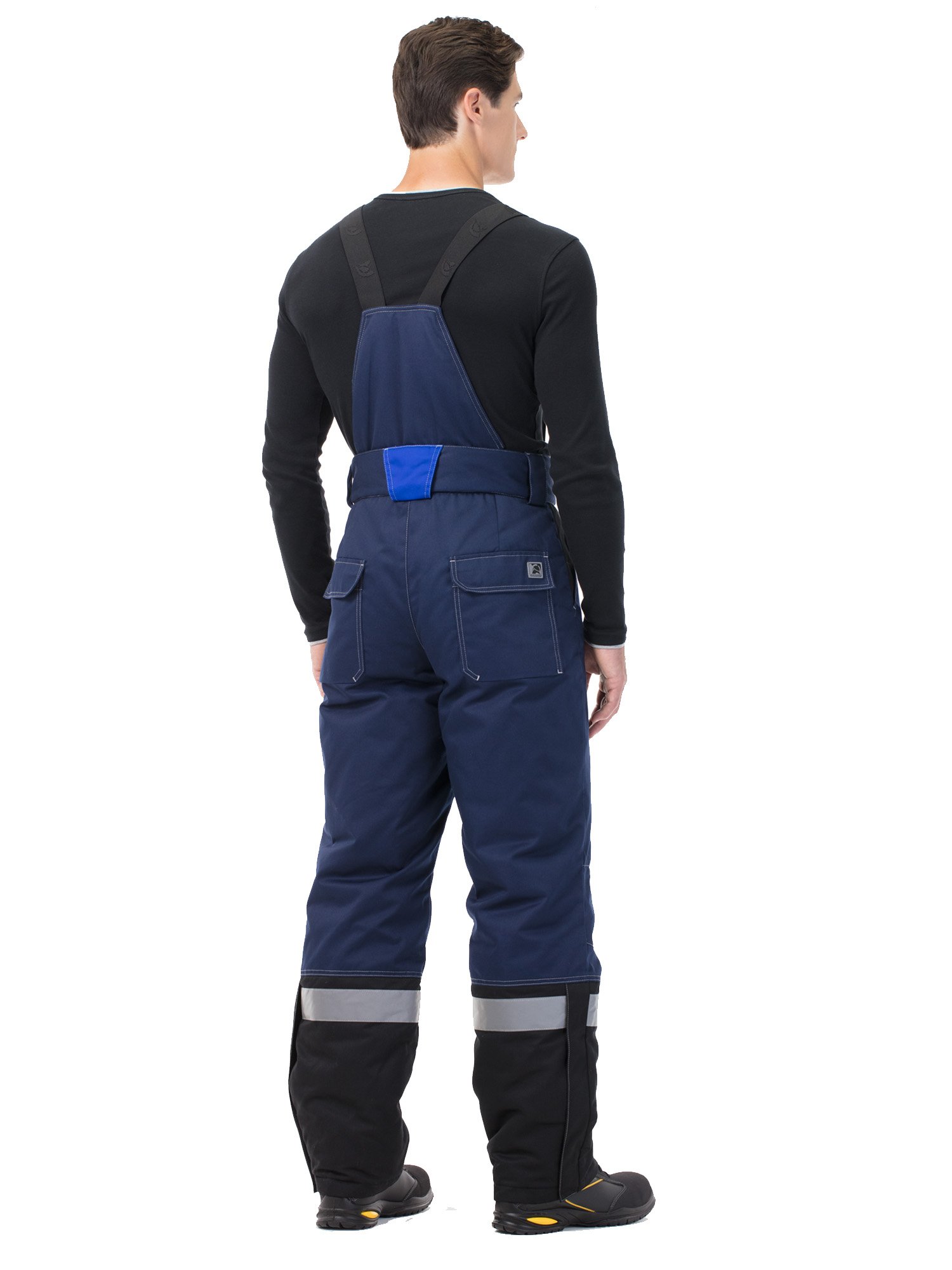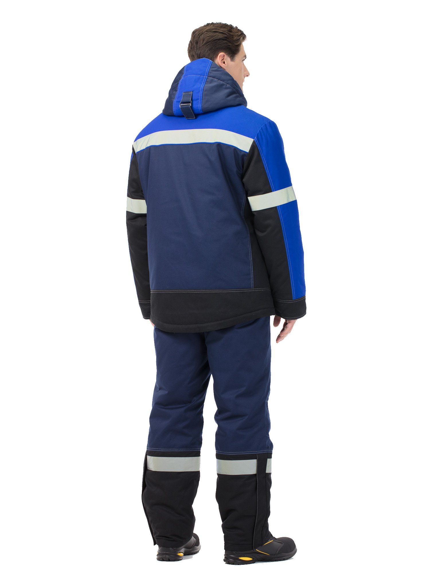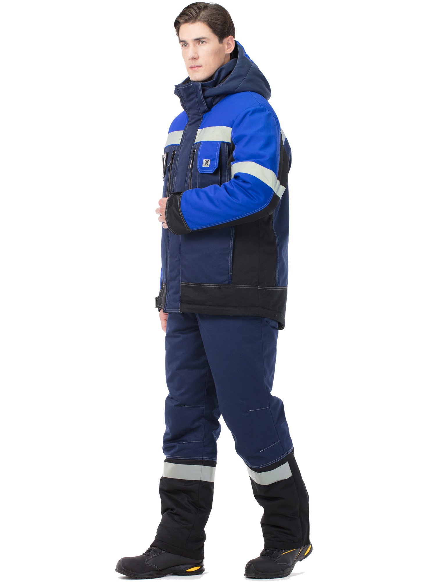 На куртке и по низу брюк – широкие световозвращающие полосы для работы в условиях плохой видимости.