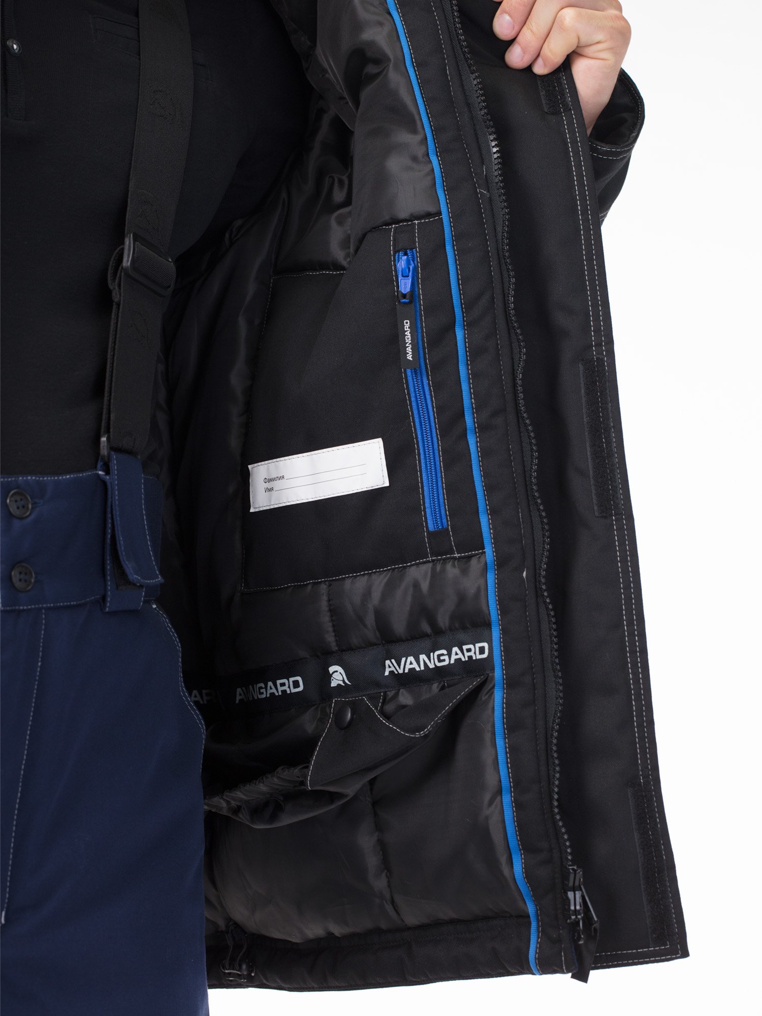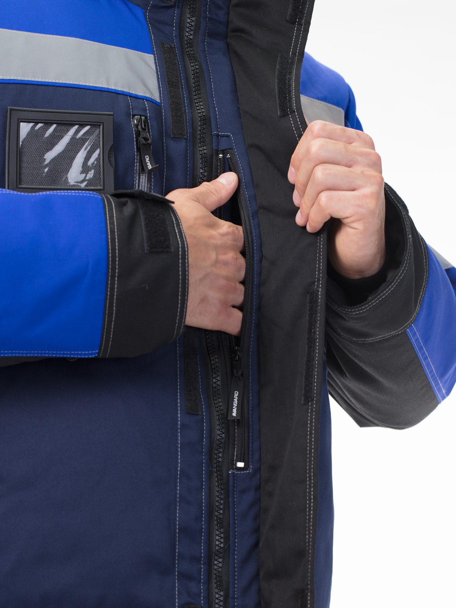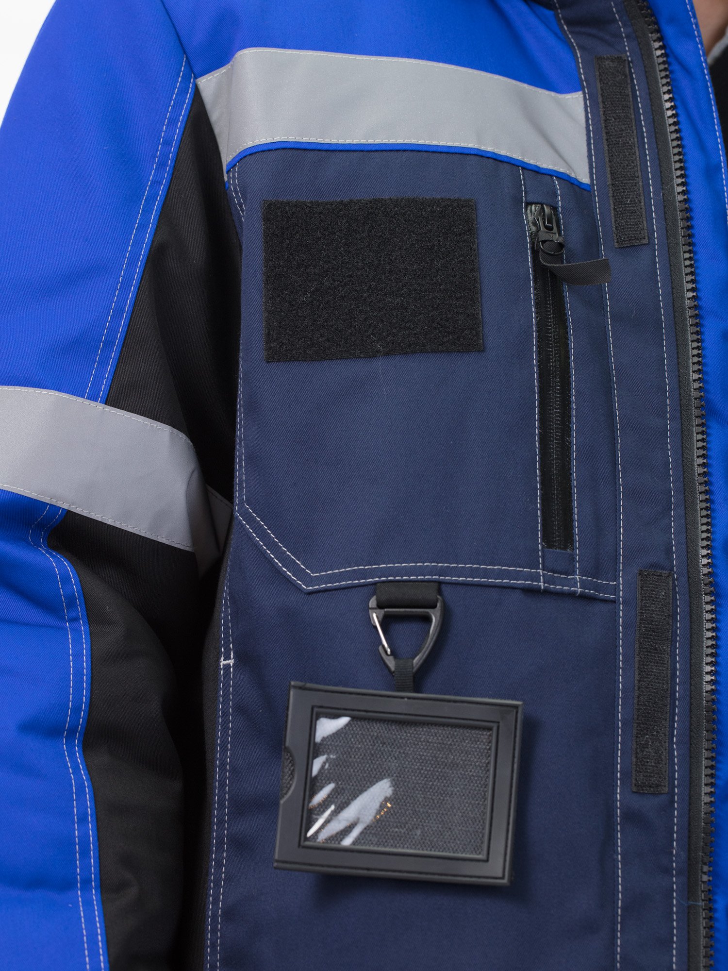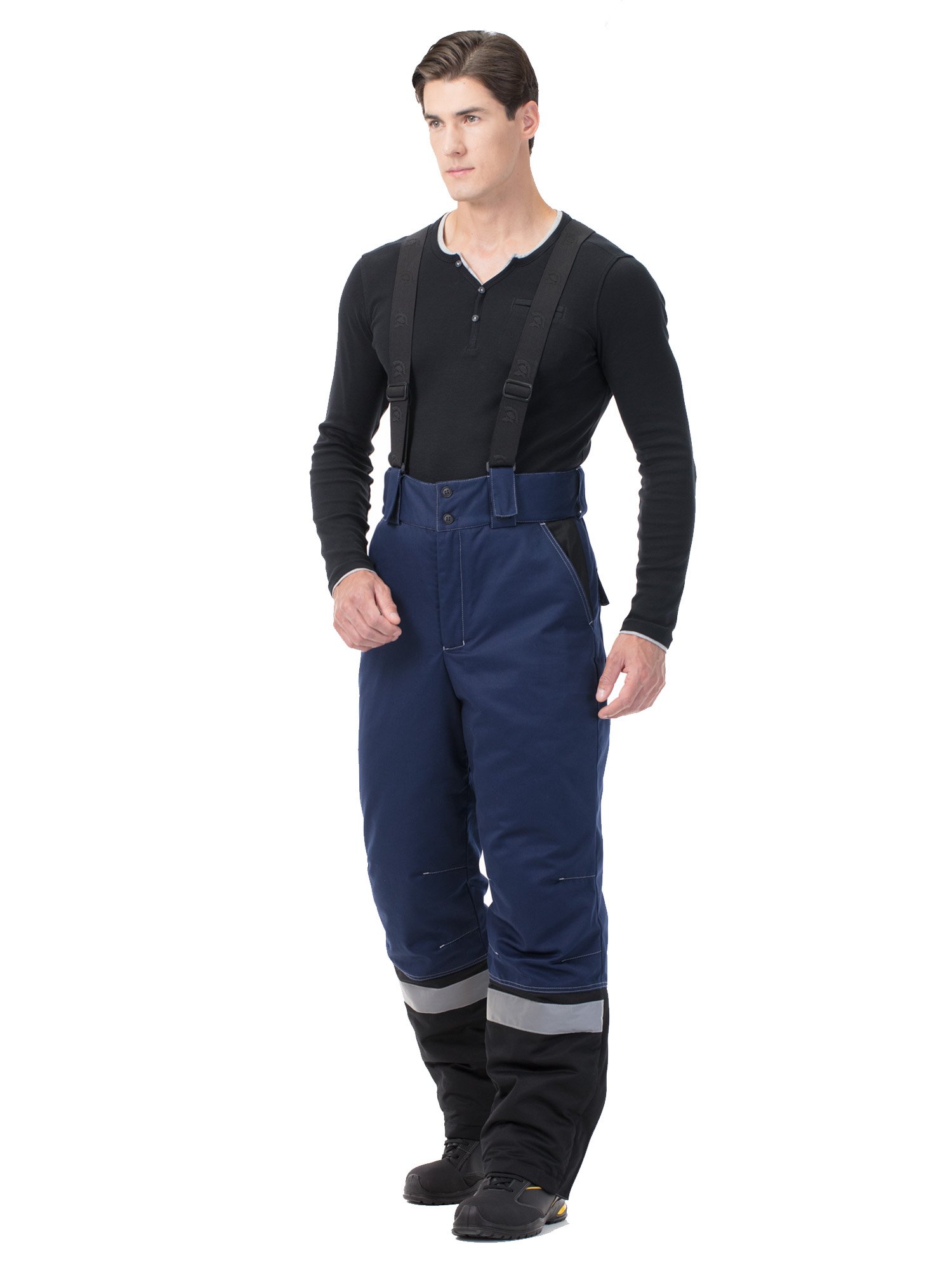 На куртке и по низу брюк – широкие световозвращающие полосы для работы в условиях плохой видимости.