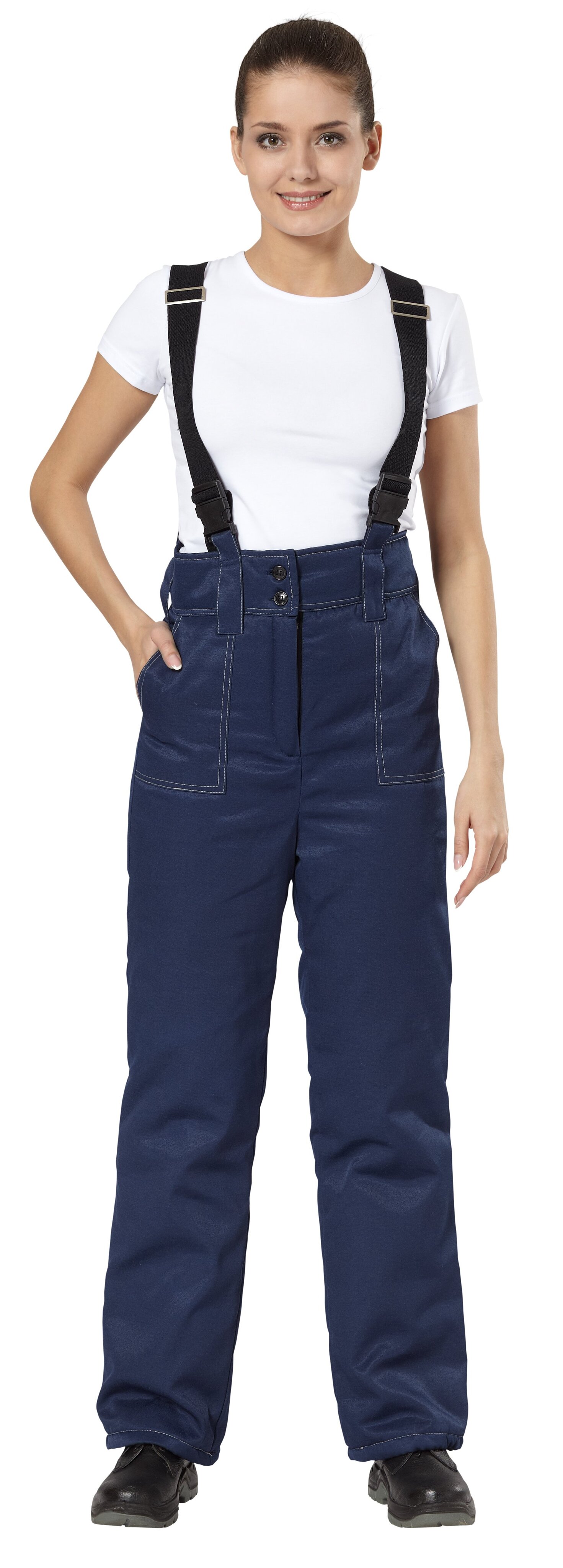 - брюки с широким поясом на бретелях