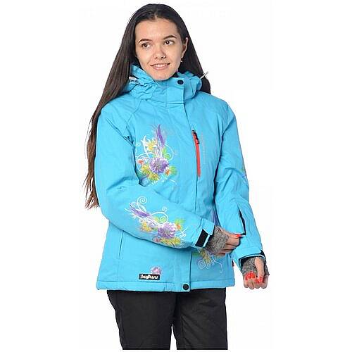 Стильная, ярка с невероятно красивой аппликацией женская горнолыжная куртка, прямого слегка приталенного кроя, с центральной молнией закрытой ветрозащитной планкой, воротник стойка с велюровой отделкой, снегозащитная юбка, съемный регулируемый капюшон, скользящие молнии, вентиляция, эластичные манжеты внутри рукава, регулируемые манжеты. Данную модель можно приобрести в комплекте с брюками.