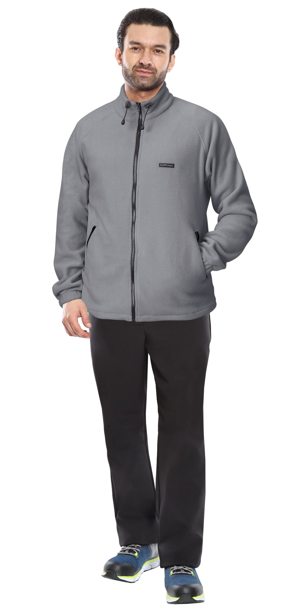 Куртка прямого силуэта с центральной застежкой на молнии до верха, воротником – "стойка" и нижними прорезными карманами наклонного входа на молнию. Рукава реглан внизу на резинке.