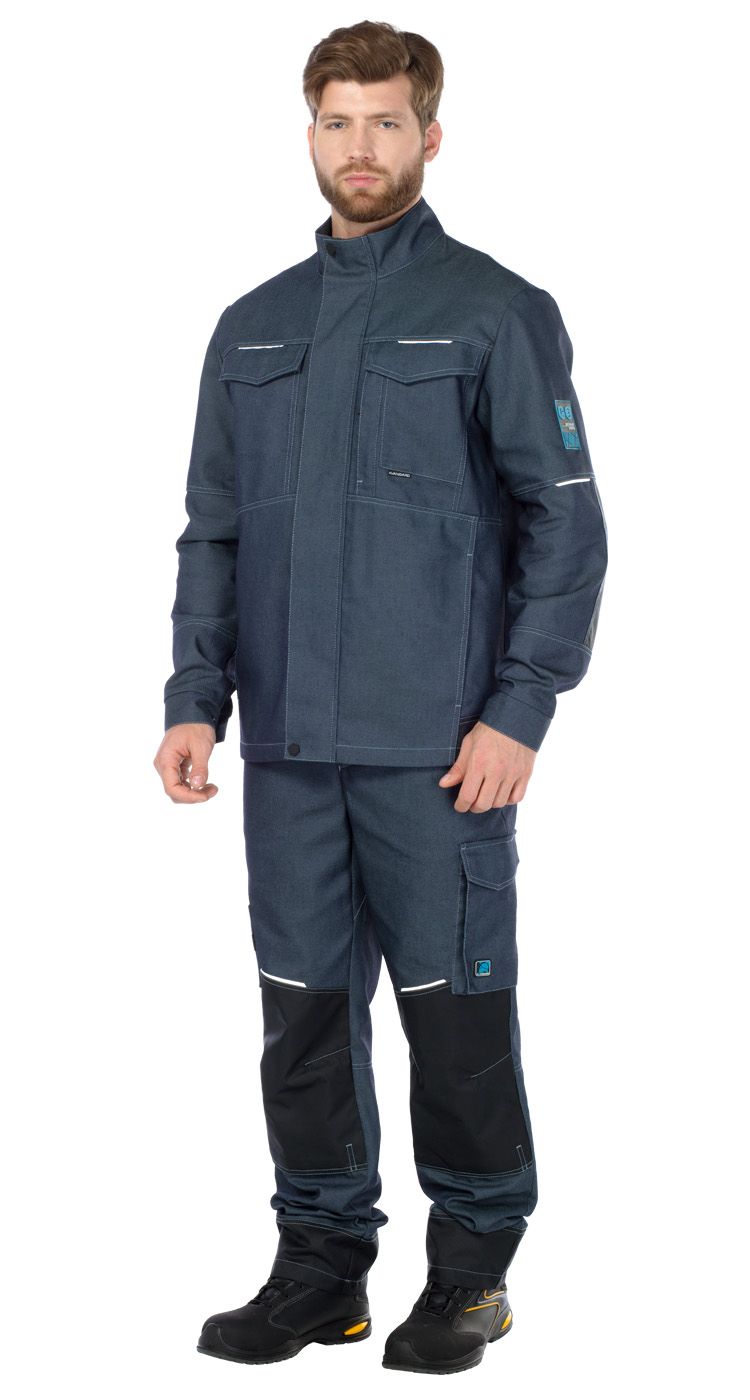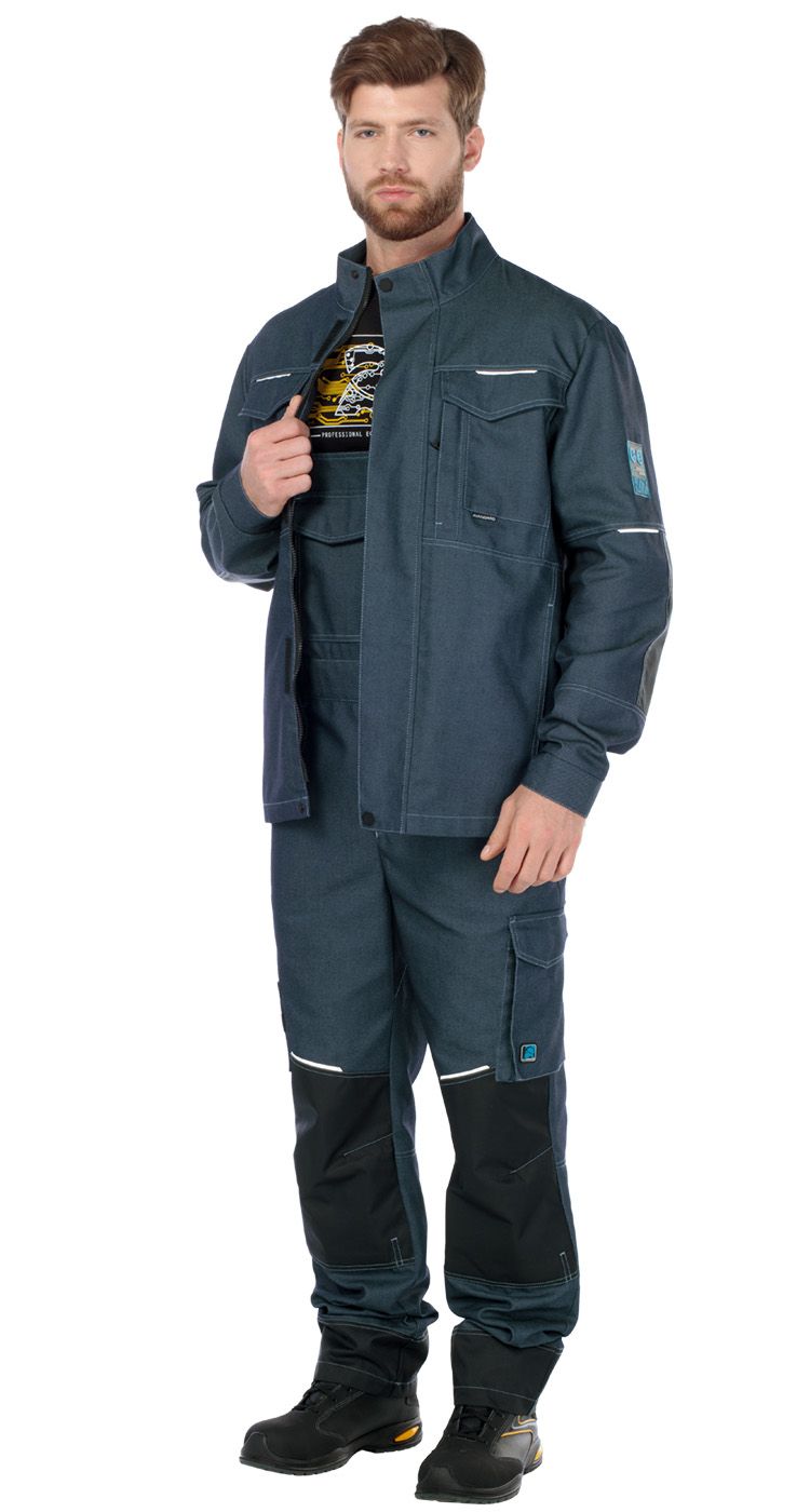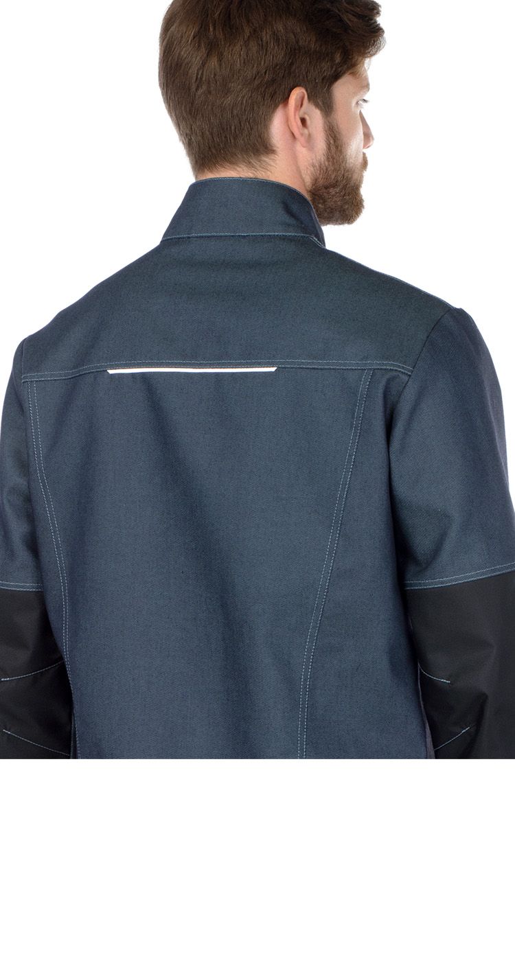 На рукавах в области локтей и по низу куртки сзади - усилительные накладки из ткани устойчивой к истиранию. Светоотражающие элементы на рукавах и кокетках куртки для обеспечения безопасности при работе в условиях с плохой видимостью.