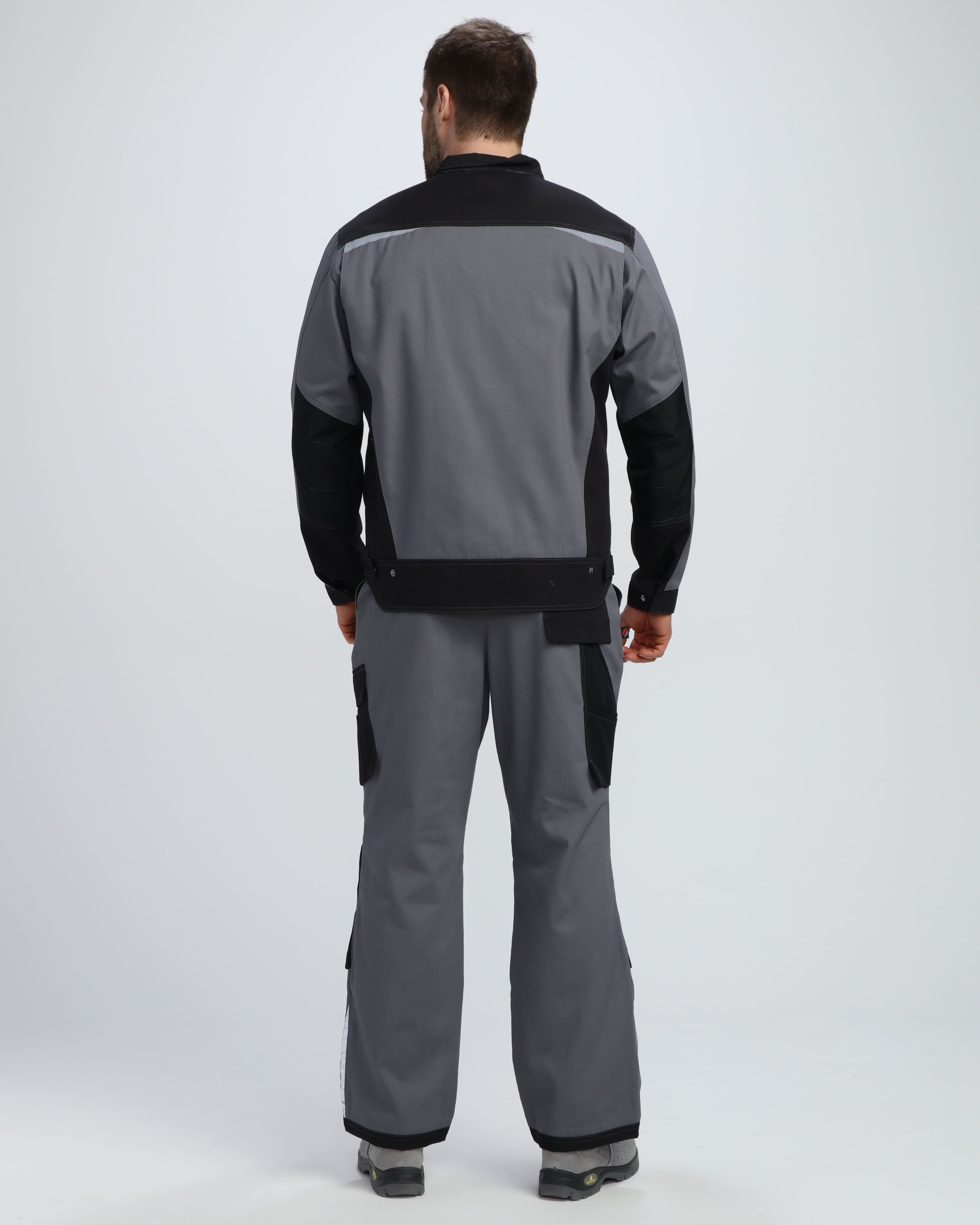 Куртка может быть комплектована с брюками и полукомбинезоном "Милан" для создания полноценного рабочего костюма, обеспечивающего комплексную защиту и унифицированный профессиональный вид рабочей команды.
