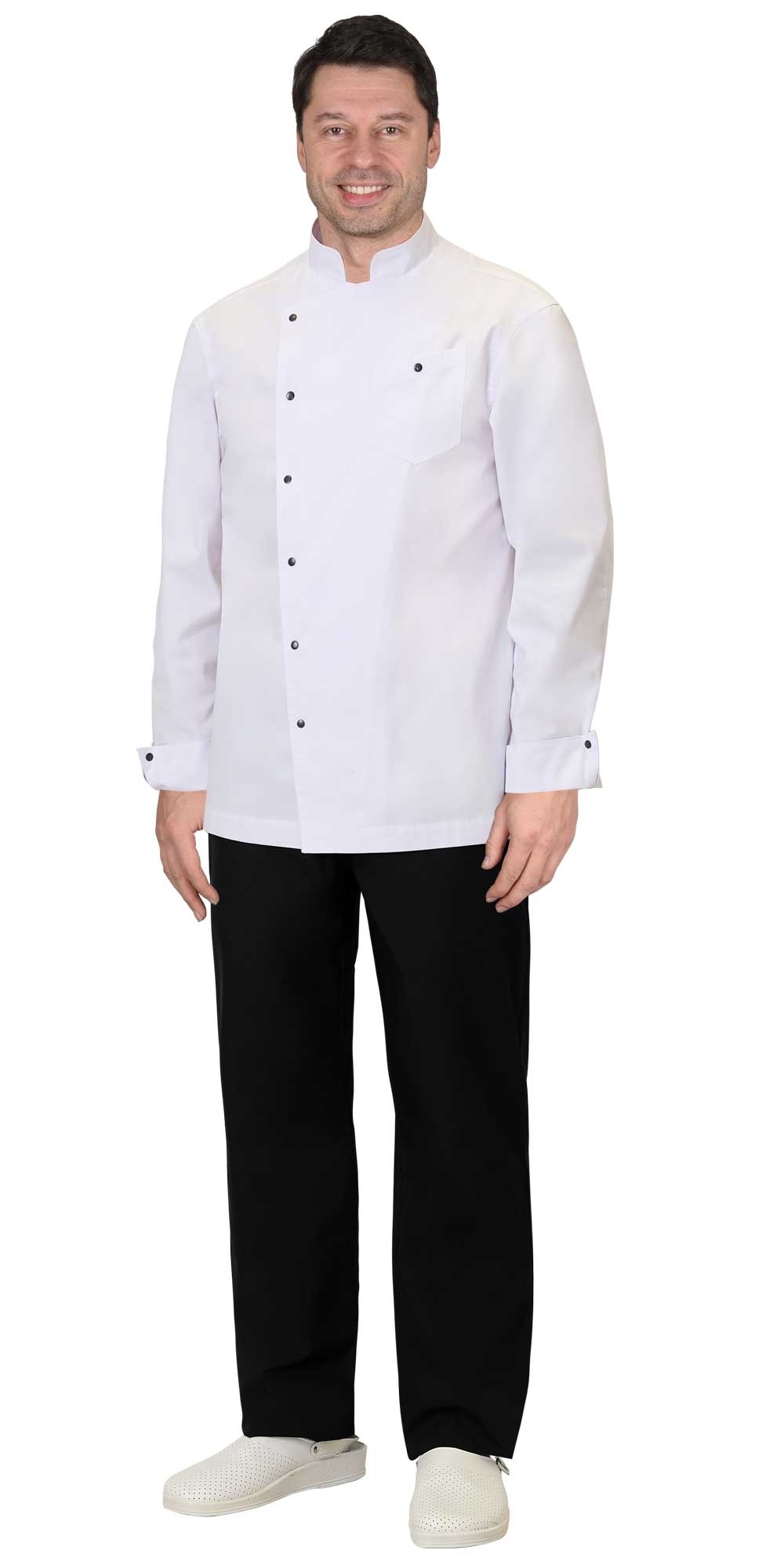 Куртка типа пиджак полуприлегающего силуэта с длинными рукавами. Втачной воротник стойка. Сквозная смещённая бортовая застёжка на кнопки. Спинка с отрезными бочками, со вставкой из трикотажной сетки (для циркуляции воздуха). По низу рукавов притачные отложные манжеты застегивающиеся на кнопку.