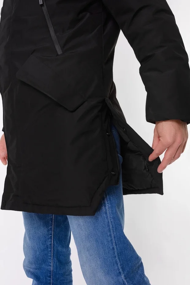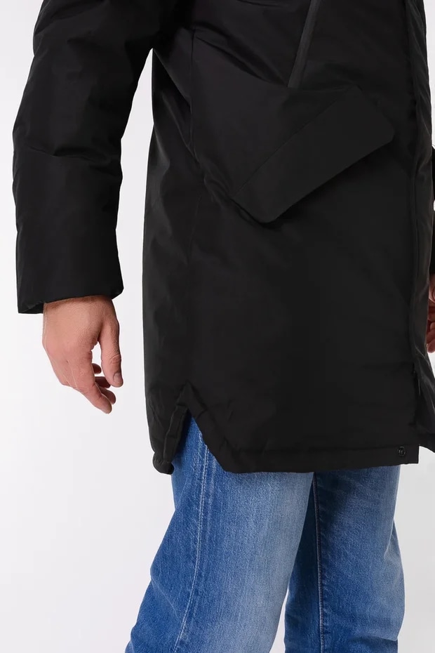 Влагозащитные молнии на боковых карманах, двухзамковая центральная молния, молния-расширитель по низу куртки, рюкзачные лямки, эластичные внутренние манжеты на рукавах, внутренний карман с отверстием и держателем для наушников, очень глубокий штормовой капюшон с формовочной проволокой по овалу, регулировка капюшона по глубине и овалу, ветрозащитная планка на магнитах 4 внешних и 1 внутренний карманы.
