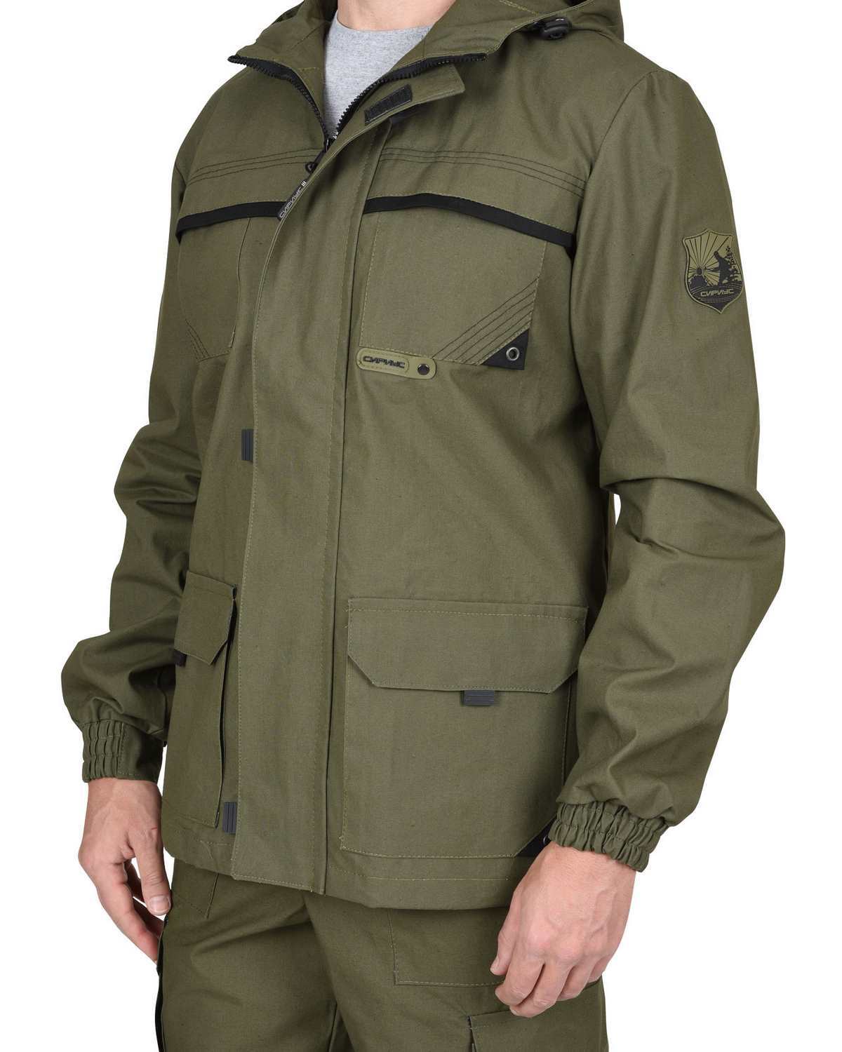Куртка прямого силуэта, длинная; с центральной застёжкой на тесьму-«молнию» ; притачным регулирующимся по высоте и объёму капюшоном с противомоскитной сеткой; отлетными планками переда и спинки защищающими от проникновения насекомых, нагрудными накладными карманами, нижними накладными карманами с клапанами на липучке. Низ рукавов с манжетами на резинке.