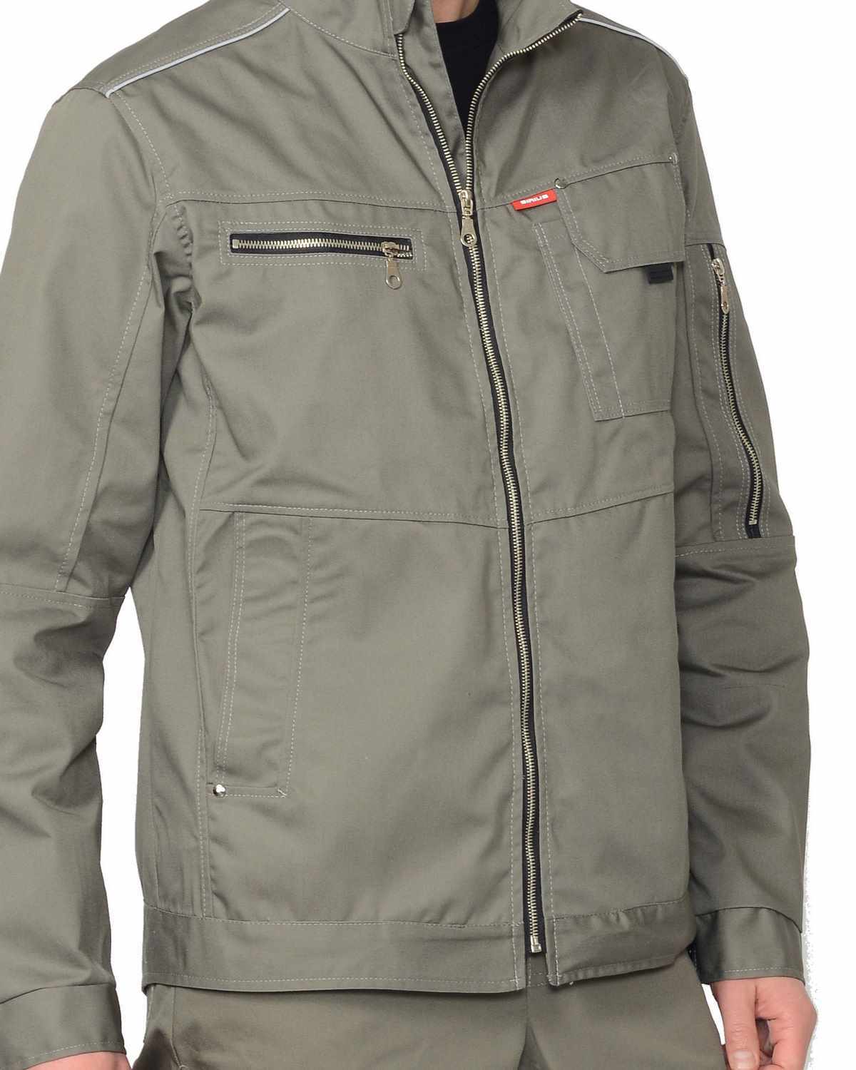 Куртка прямого силуэта, с центральной застежкой на металлическую молнию , с нагрудным накладным и прорезным, застегивающимся на молнию карманами; нижними внутренними карманами с листочками; пояс и манжеты рукавов регулируются по ширине патами и кнопками. Воротник-стойка.