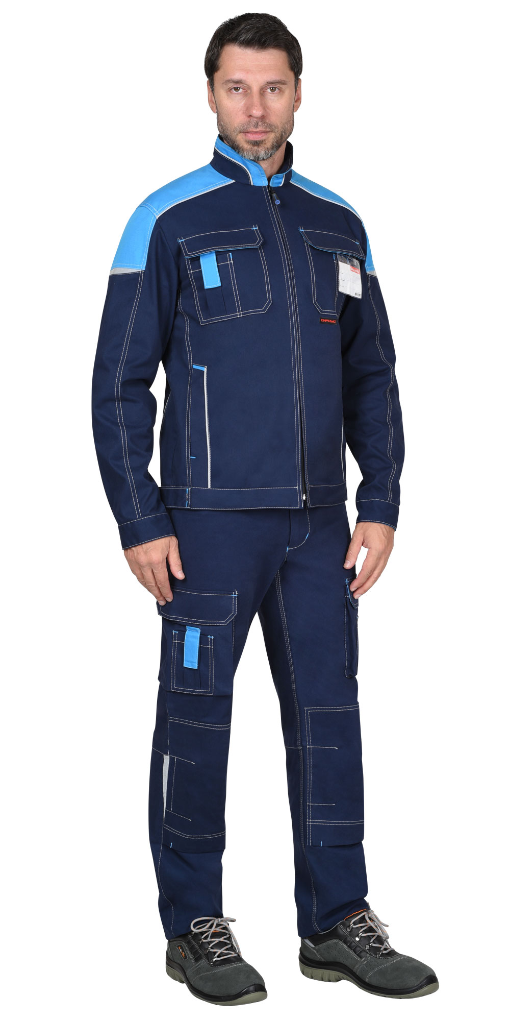 Куртка комбинированная выполнена из тканей двух цветов с контрастной отстрочкой и светоотражающими элементами.
