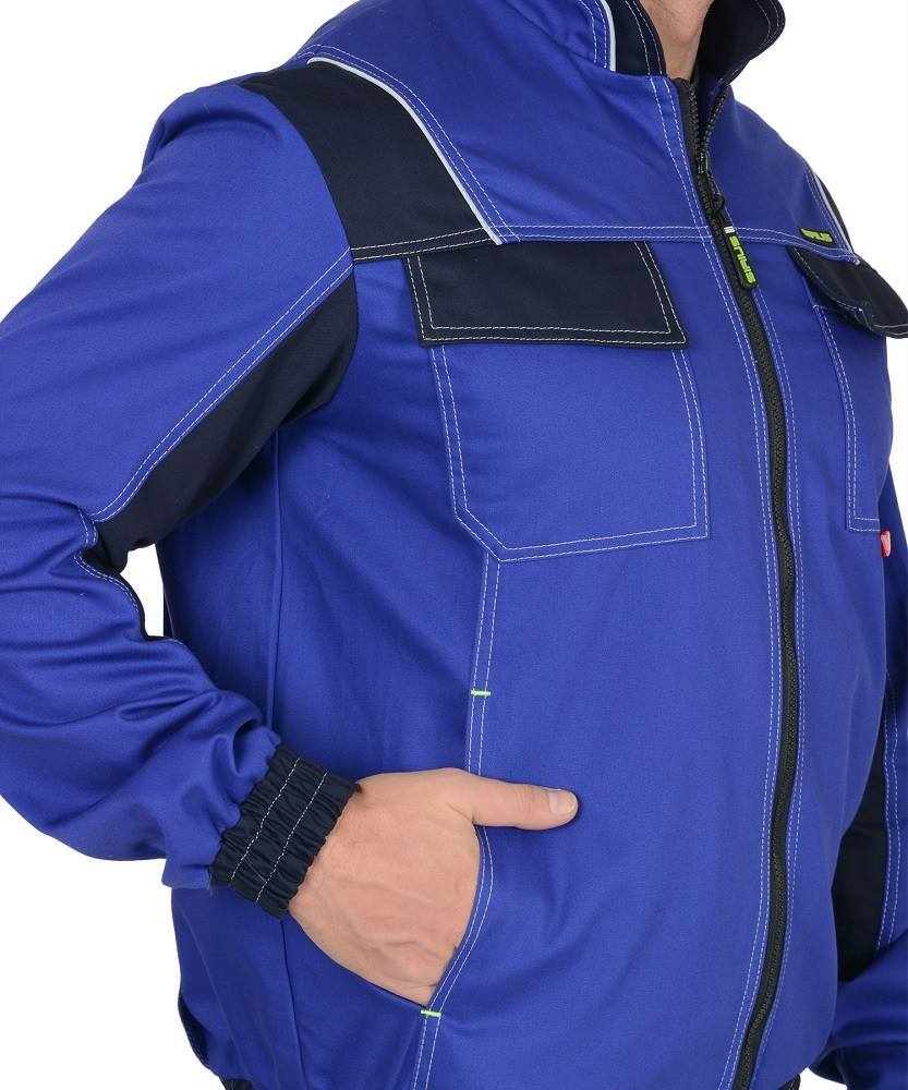 Куртка прямого силуэта; с притачным поясом на резинке, с центральной застёжкой на «молнию» с пуллером; с воротником-стойкой . На полочках расположены накладные верхние карманами с клапанами и нижние вертикальные карманы в рельефе. На кокетке и на воротнике располагаются СВ канты.