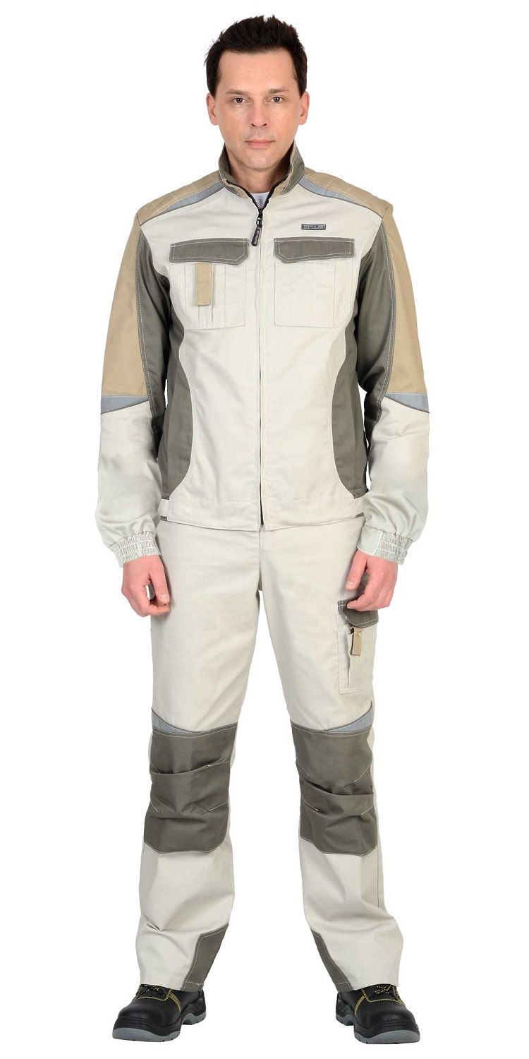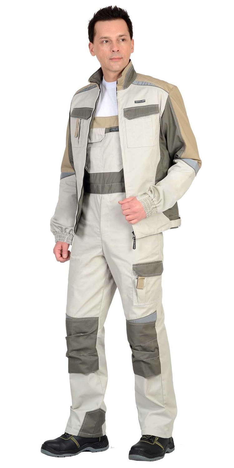 Куртка комбинированная трёхцветная, укороченная, прямого силуэта, с втачным воротником "стойка", с центральной бортовой застёжкой на молнию, с подрезными бочками, с верхними накладными карманами с клапанами, с нижними прорезными карманами на молнию. Объём куртки внизу регулируется при помощи хлястиков, пластиковой рамки и липучки.