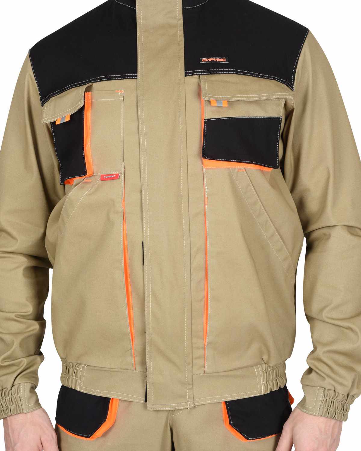 Куртка прямого силуэта, с притачным поясом, центральной застёжкой на «молнию», воротником стойка, ветрозащитной планкой, притачными манжетами на резинке. На полочках расположены накладные объемные верхние карманы с клапанами, и нижние объемные карманы.