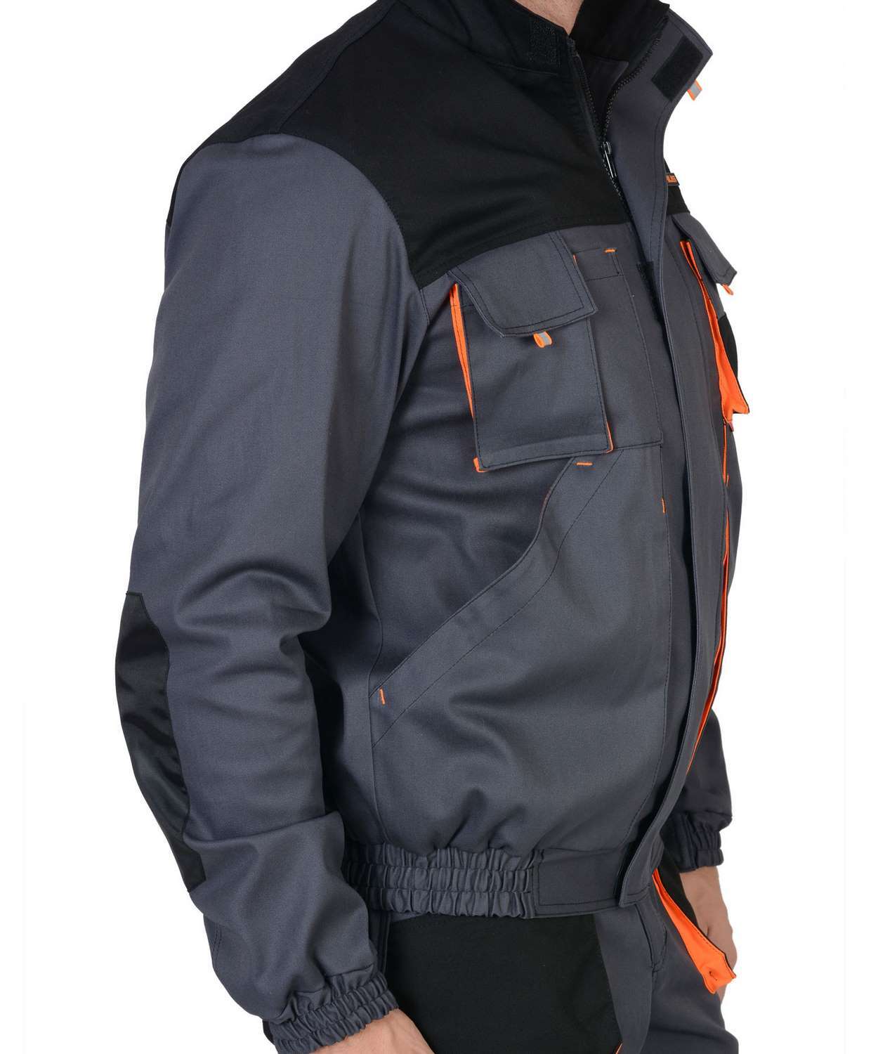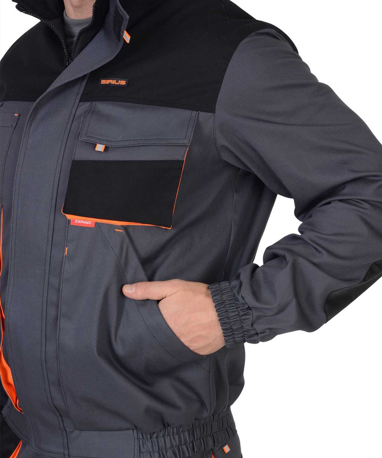 Укороченная куртка прямого силуэта, с центральной застежкой на «молнию», с воротником стойка, с ветрозащитной планкой, с притачными манжетами, и притачным поясом, с верхними накладными объемными карманами с клапанами и нижними объемными карманами.Особенности материала: Стрейч-эффект.