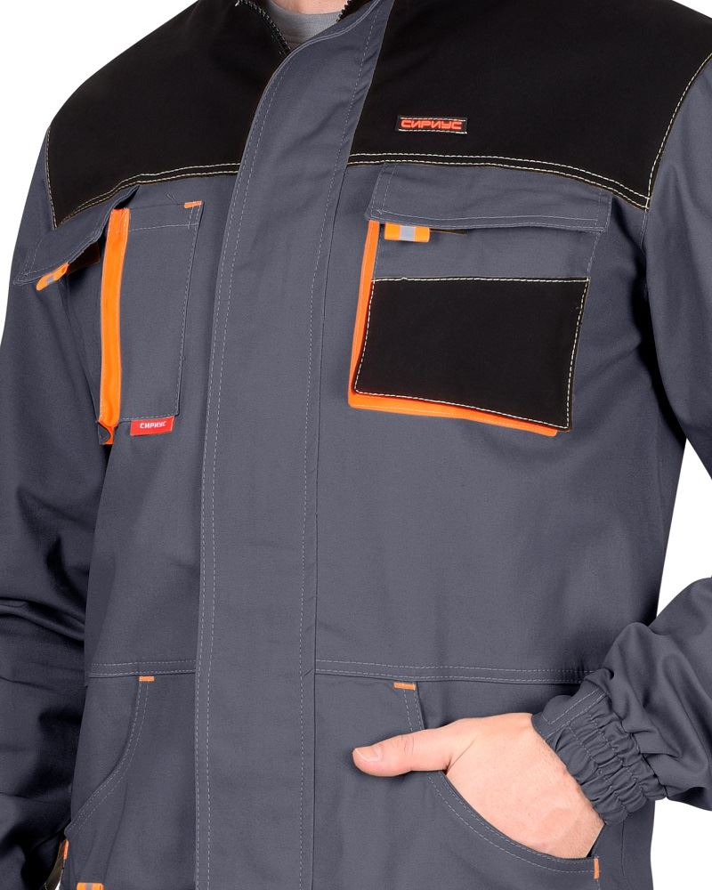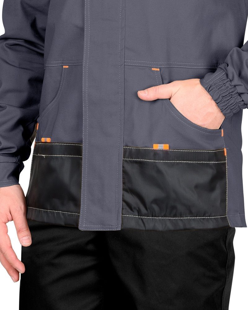 Куртка прямого силуэта; с центральной застежкой на «молнию»; с воротником стойка, с ветрозащитной планкой, с притачными манжетами, с накладными объемными верхними карманами с клапанами, с нижними объемными карманами.
