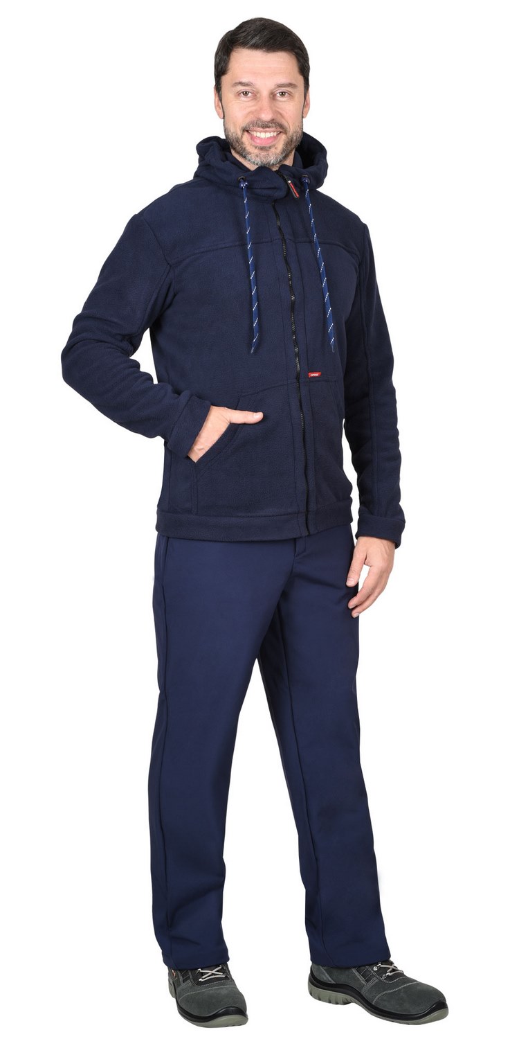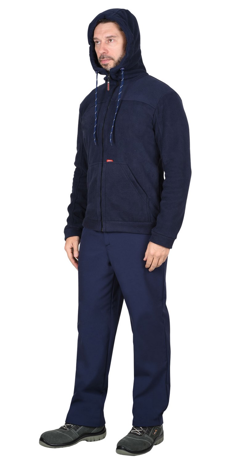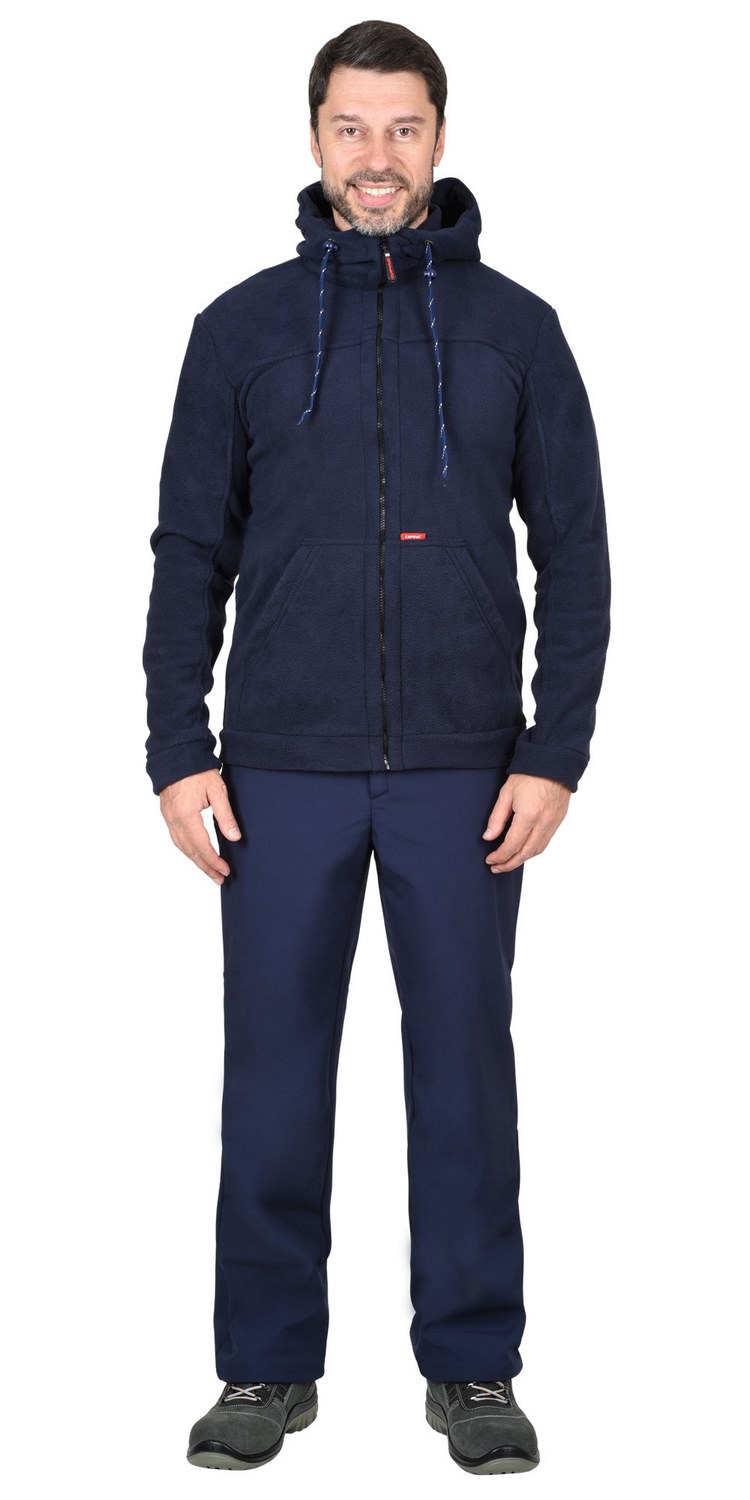 Куртка прямого силуэта, с втачным капюшоном; с центральной застёжкой на тесьму - "молния", с двумя нижними накладными карманами с наклонным входом, с притачным поясом. Рукава втачные с притачными манжетами.