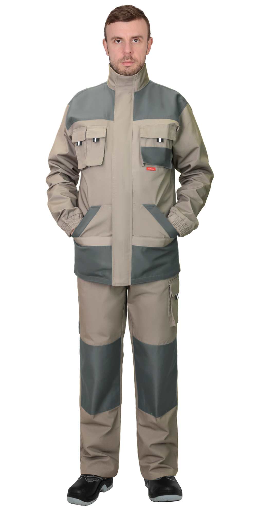 Материал верха основой: ткань смесовая с пропиткой ВО, пл. 250 г/м², состав 65%ПЭ, 35%ХБ, цвет: песочный