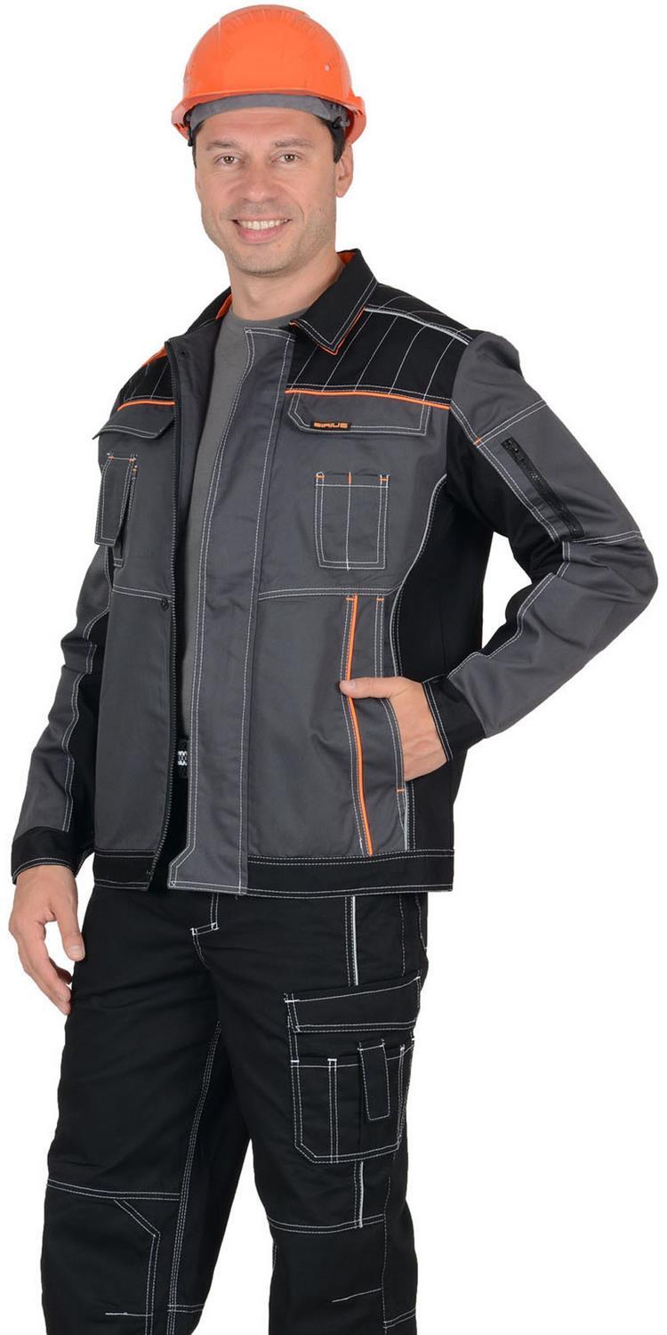Куртка укороченная, прямого силуэта, с центральной застёжкой на молнию, накрытую ветрозащитной планкой. С отложным воротником, с различными карманами, втачными рукавами и притачными манжетами, на левом рукаве накладной карман с молнией. Куртка с притачным поясом, по спинке пояс регулируется хлястиками застегивающимися на кнопки.