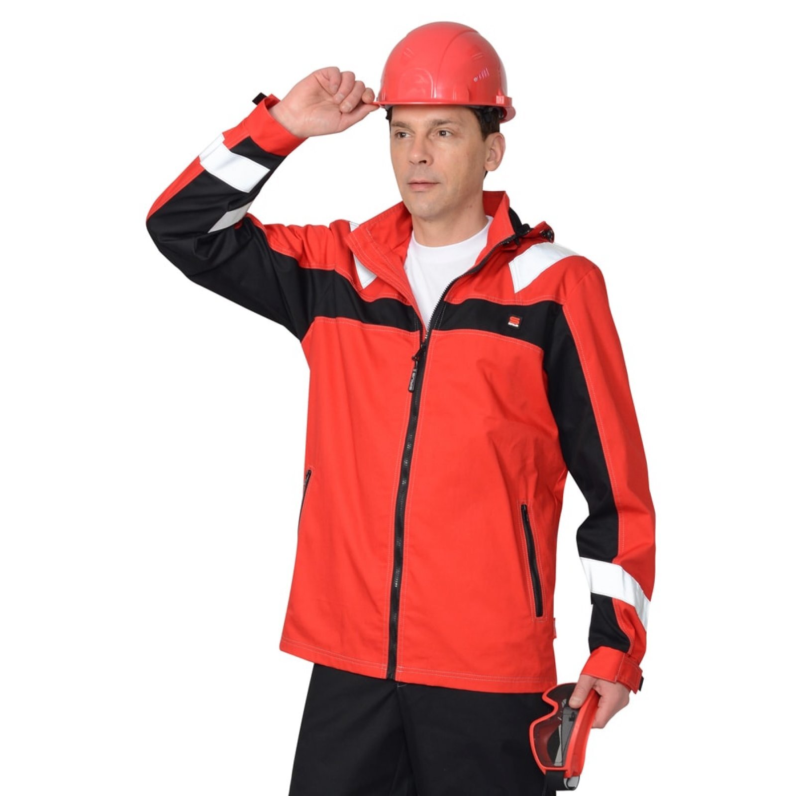 Куртка длинная, с воротником "стойка", с центральной застежкой на молнию, внутреним ветразащитным клапаном в верхней части правого борта и нижними прорезными карманами на молнии.