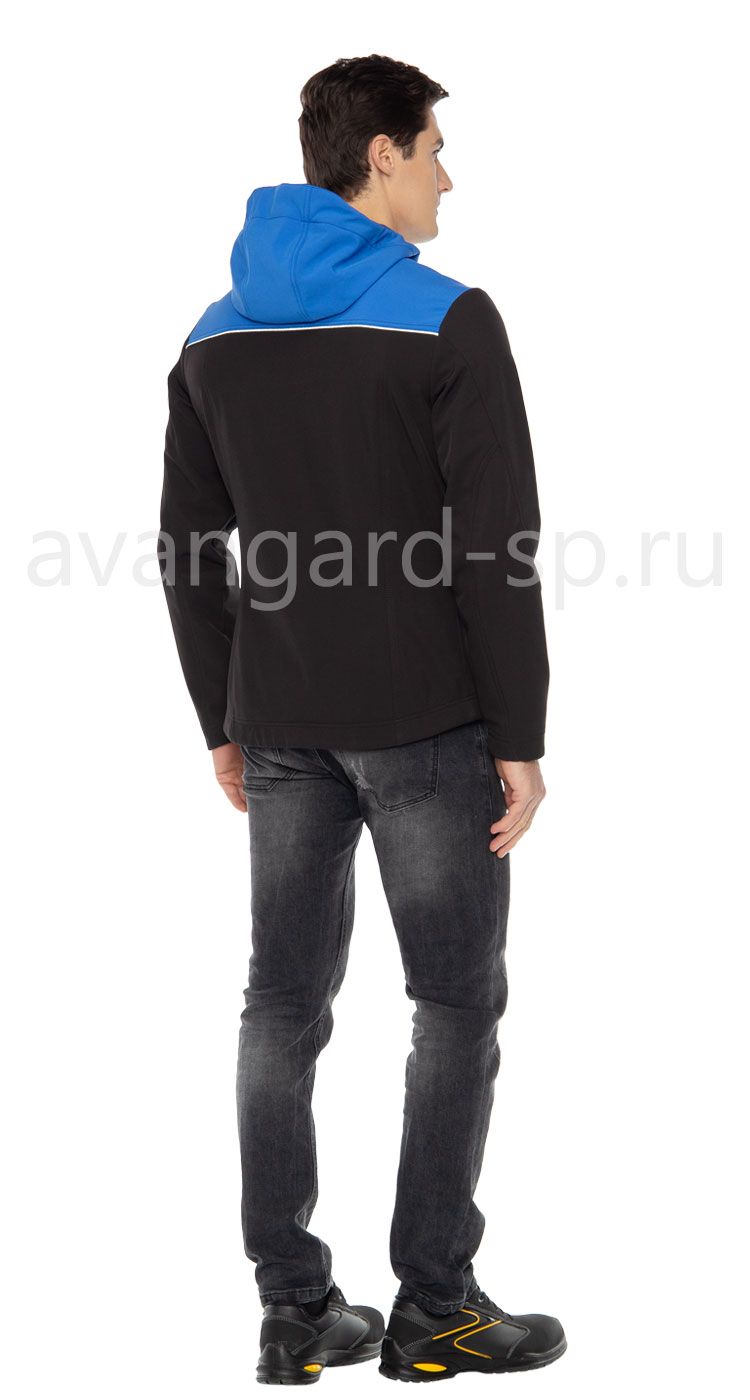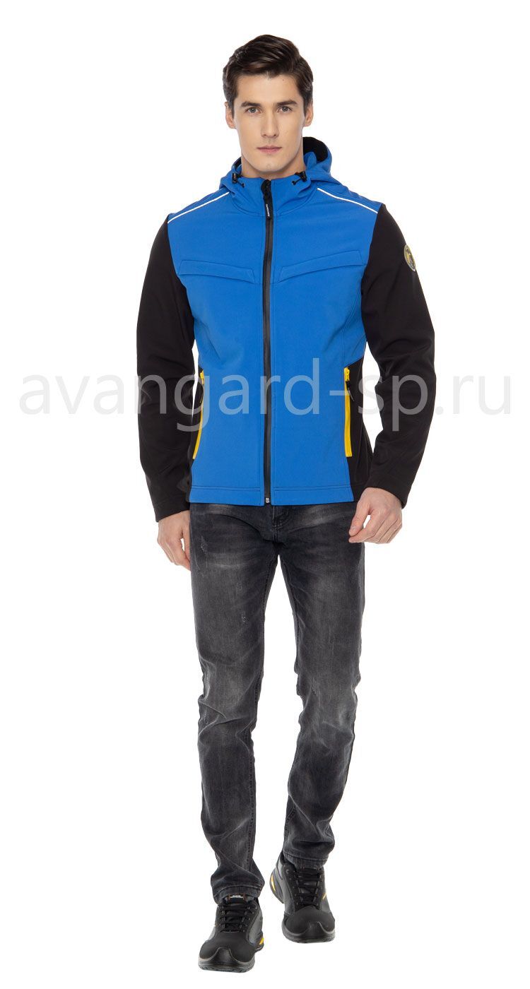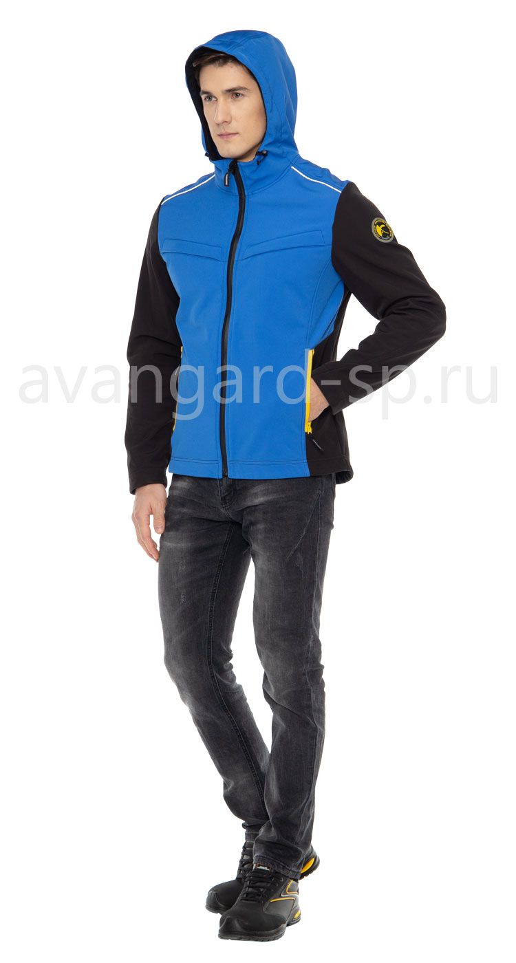 Куртка с капюшоном из трехслойного материала softshell, обладающего высокими ветро- и водонепроницаемыми свойствами. Куртка полуприлегающего силуэта с центральной застежкой на прорезиненную молнию. Верхние нагрудные карманы под кокеткой на молниях, нижние карманы с прорезиненными молниями. Кулиса по низу куртки для регулировки объема. Удобная мягкая внутренняя планка застежки. Рукава втачные эргономичной формы. Люверсы с сеткой для вентиляции в нижней части рукавов. Световозвращающие канты спереди и сзади под кокетками. Капюшон с кулисой по лицевой части для регулировки объема. Внутренние карманы для телефона и документов формата А4. Дополнительный комфорт в носке обеспечивается стрейчевыми свойствами материала (4-way stretch).