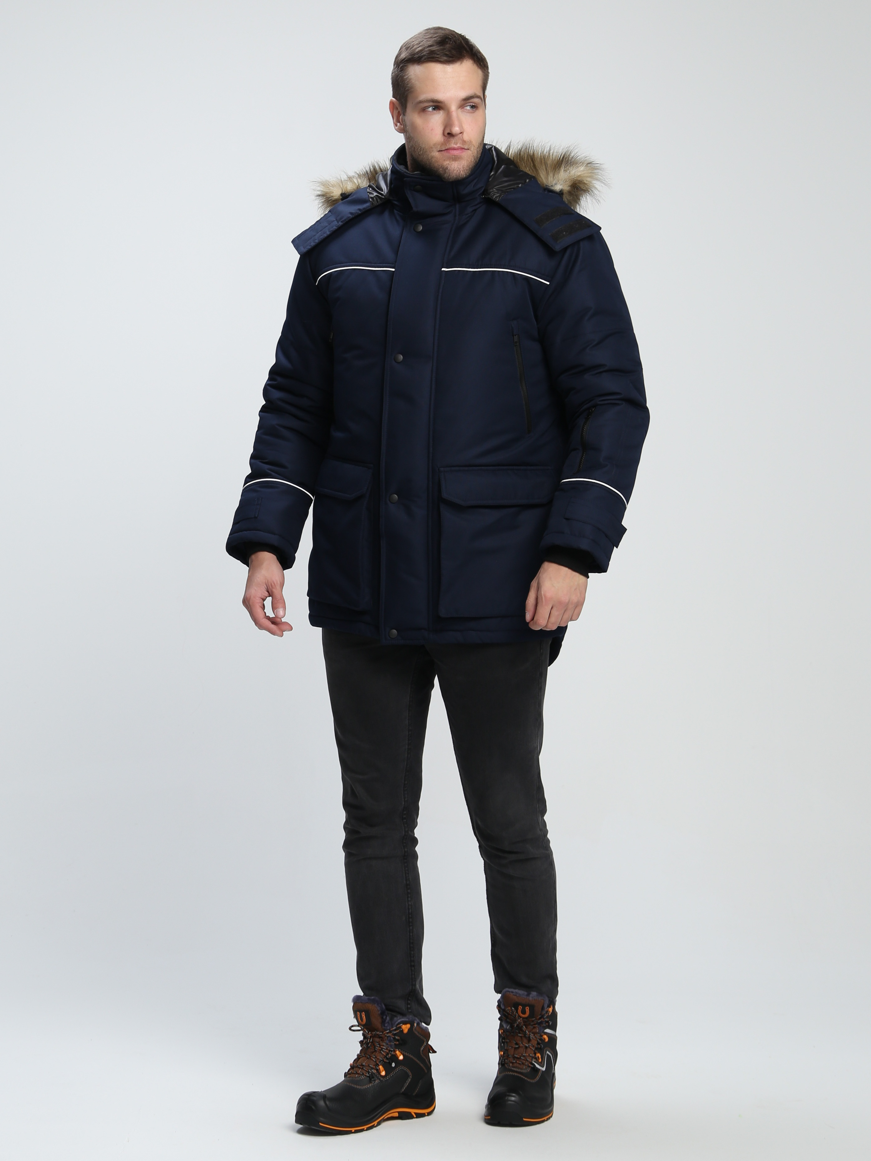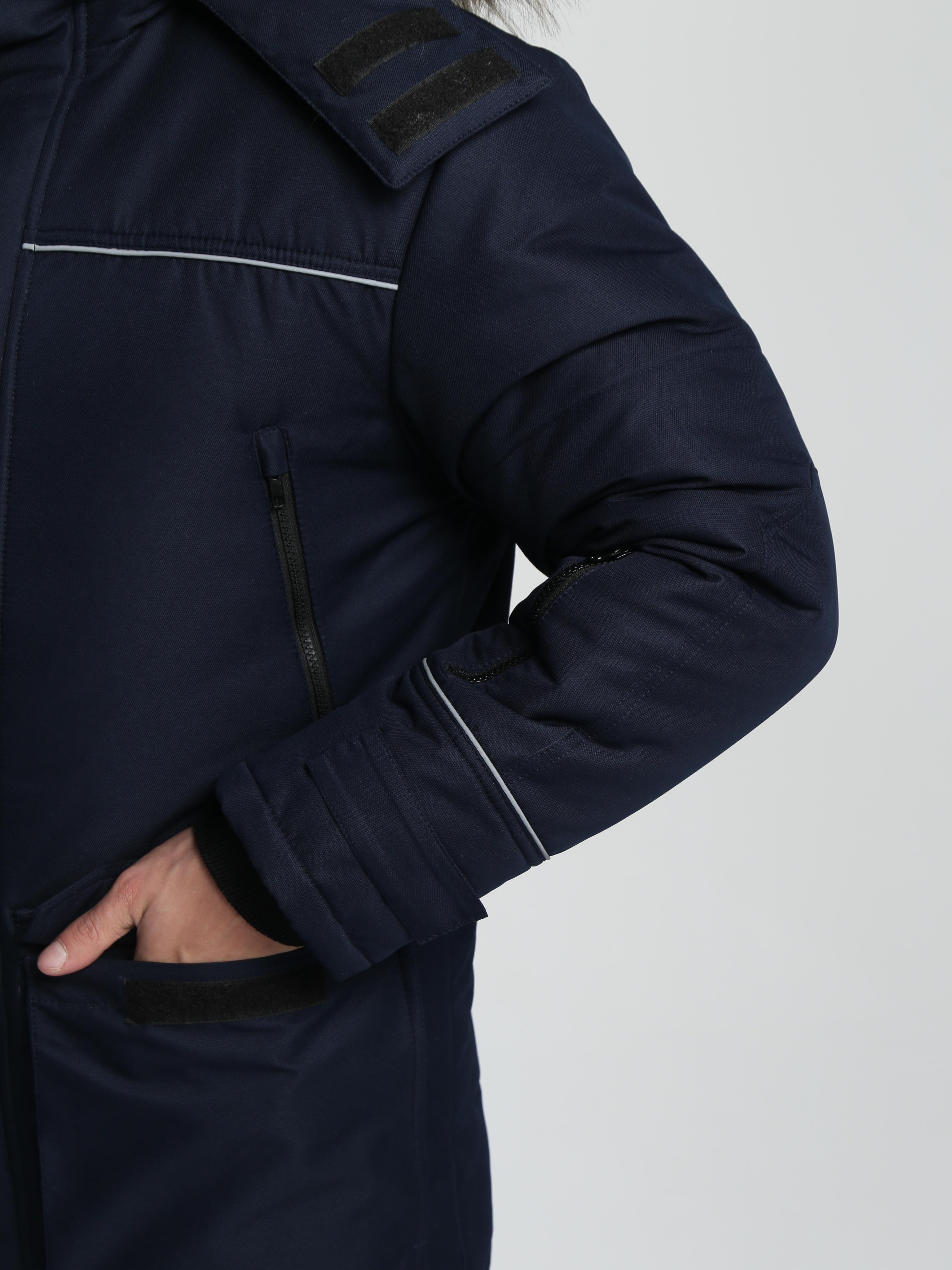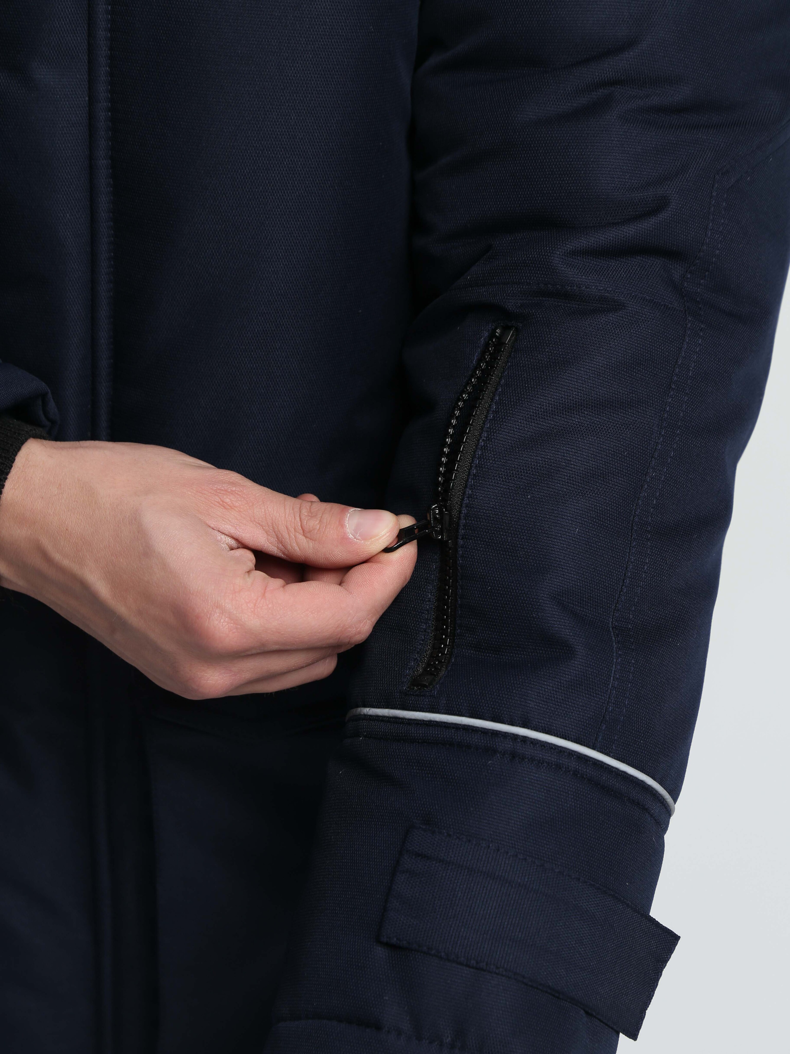 - застёжкой на тесьму «молния» с двумя внешними утепленными ветрозащитными планками и одной внутренней
