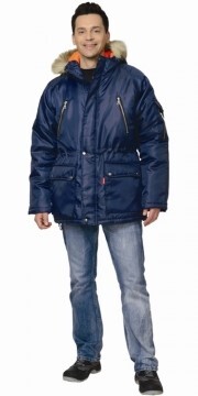 Куртка длинная. Капюшон с опушкой из натурального меха.