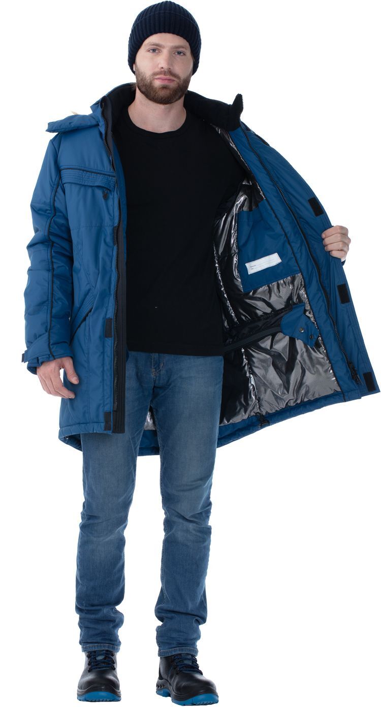 Куртка-парка, с центральной застежкой на двухзамковую молнию под ветрозащитной планкой на липучках и удлиненной спинкой. Внутренняя ветрозащитная планка закрывает верхний край молнии и дополнительно защищает от ветра.
