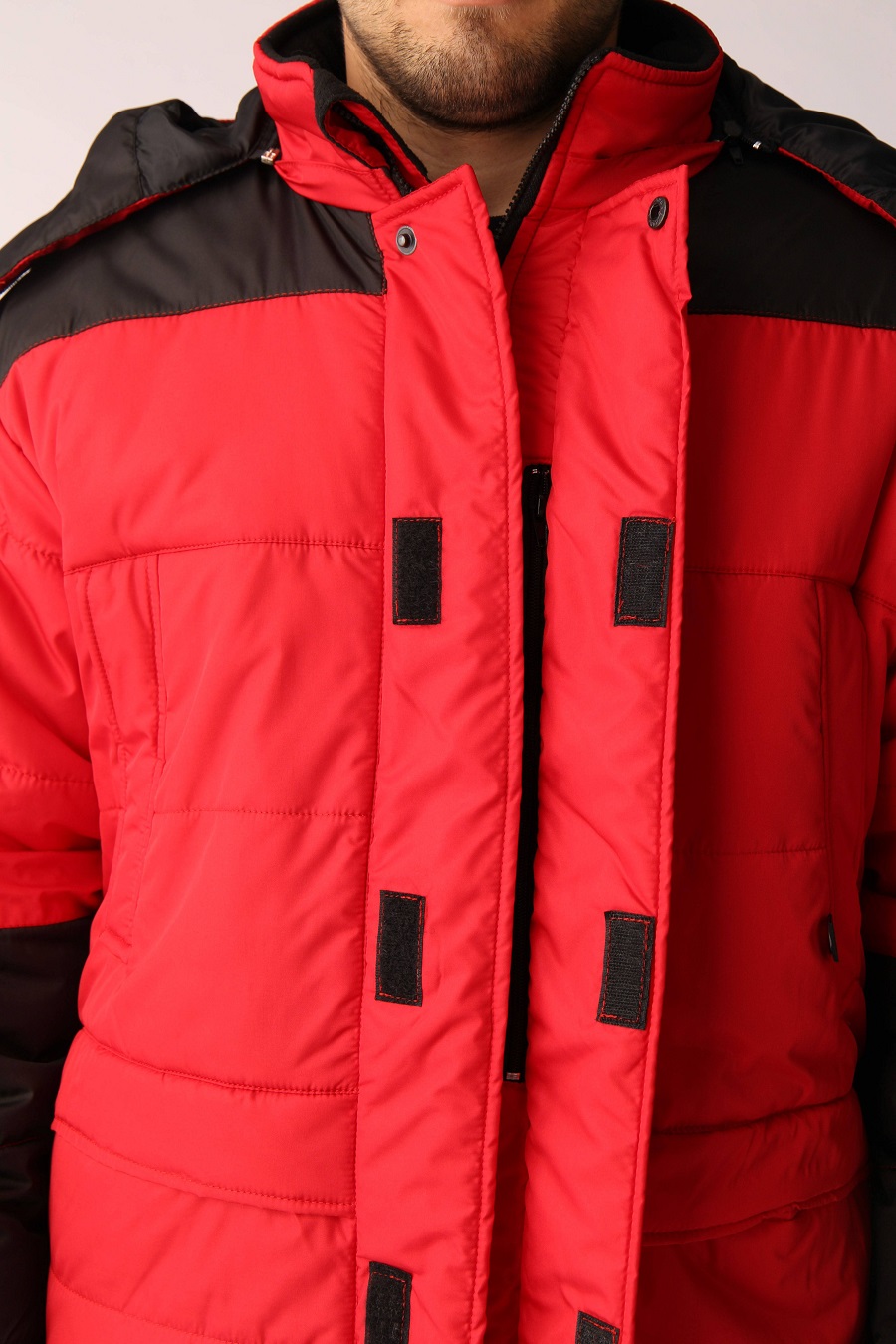 Мужская зимняя куртка «Европа» предназначена для комфортной работы при низких температурных режимах. Куртка рабочая зимняя замечательно садится по фигуре и не пропускает холод: низ куртки утягивается эластичным шнуром, на рукавах предусмотрены трикотажные манжеты, удлиненная фигурная спинка закрывает поясницу. Спецодежда производится из ткани с влагоотталкивающей пропиткой, благодаря чему отлично защищает от осадков. Плотный слой утеплителя и ветрозащитная планка на кнопках надежно сохраняют тепло, а воротник-стойка с нижним воротником из флиса укрывают шею. Объемный утепленный капюшон закрывает голову, регулируется шнуром по лицевому вырезу, может отстегиваться. Для хранения документов предусмотрен нагрудный карман на молнии формата А4, в дополнительных боковых карманах удобно хранить личные вещи.