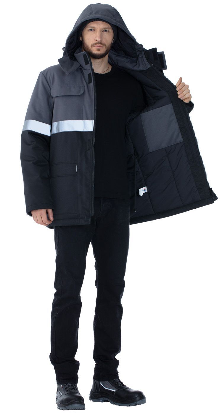 Для обеспечения безопасности в условиях плохой видимости по низу кокеток и на рукавах расположены широкие световозвращающие полосы.