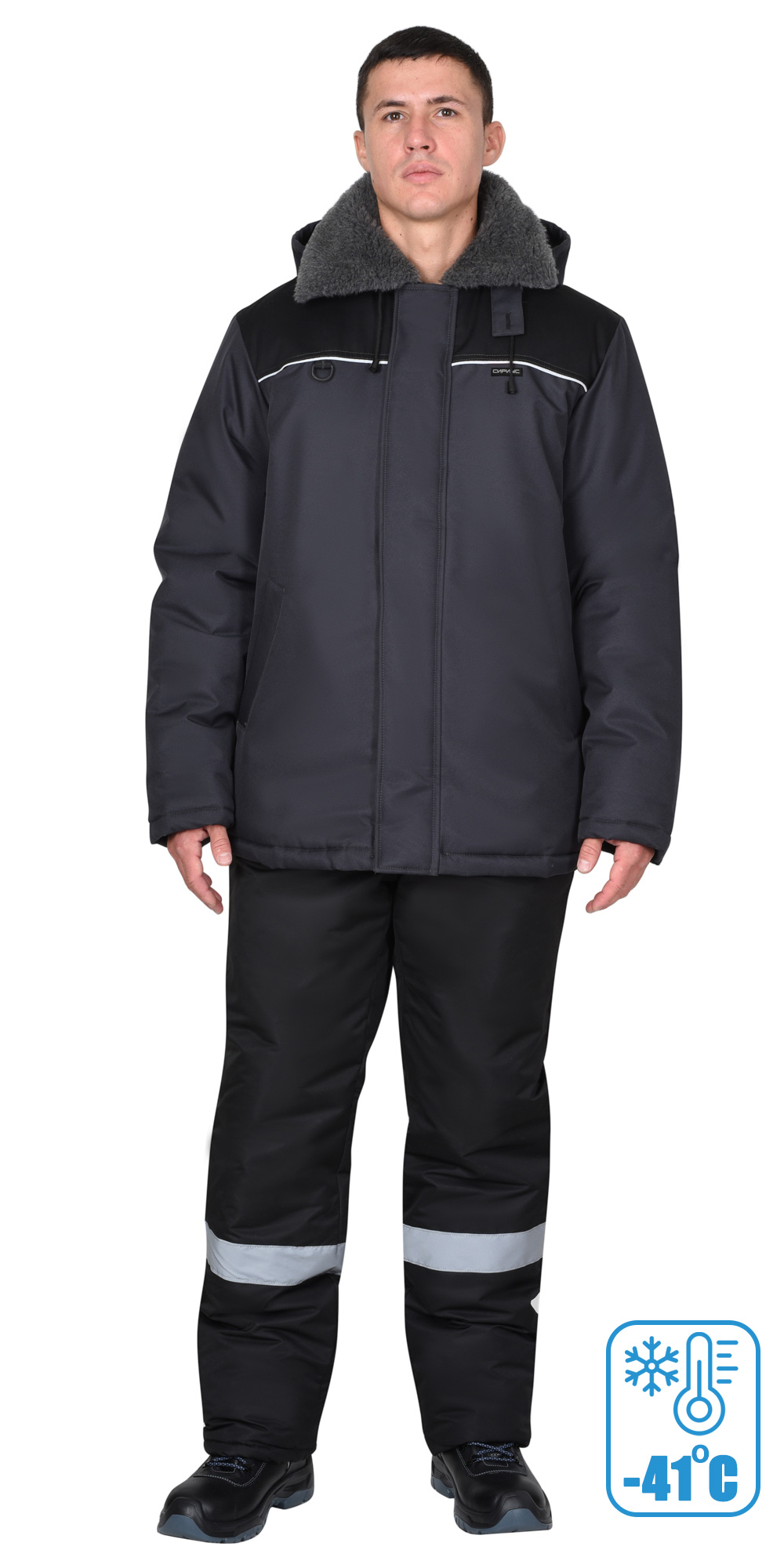 уртка прямого силуэта, удлинённая, с креплением для бейджа, с меховым отложным воротником, с центральной застёжкой на молнию от горловины до низа, накрытую ветрозащитным клапаном с потайными липучками. Куртка с нижними прорезными карманами с листочками. Рукава втачные с внутренними трикотажными манжетами. Куртка со съемным капюшоном, который пристегивается к горловине куртки при помощи пуговиц. Подкладка куртки утепленная, с левой стороны подкладки накладной карман с верхним горизонтальным входом, застегивается на липучку. В куртке предусмотрен СВ-кант, для обеспечения сигнальной видимости.