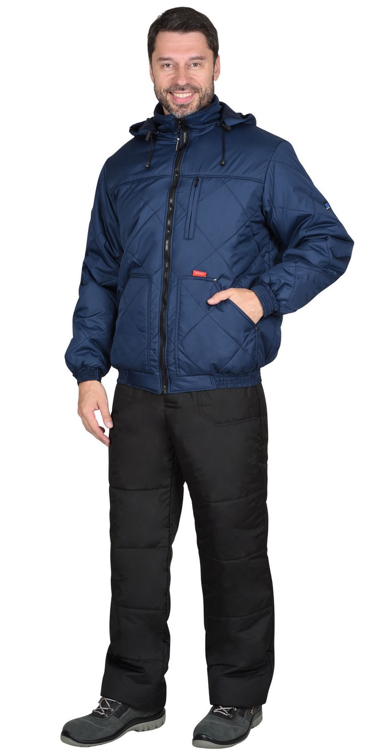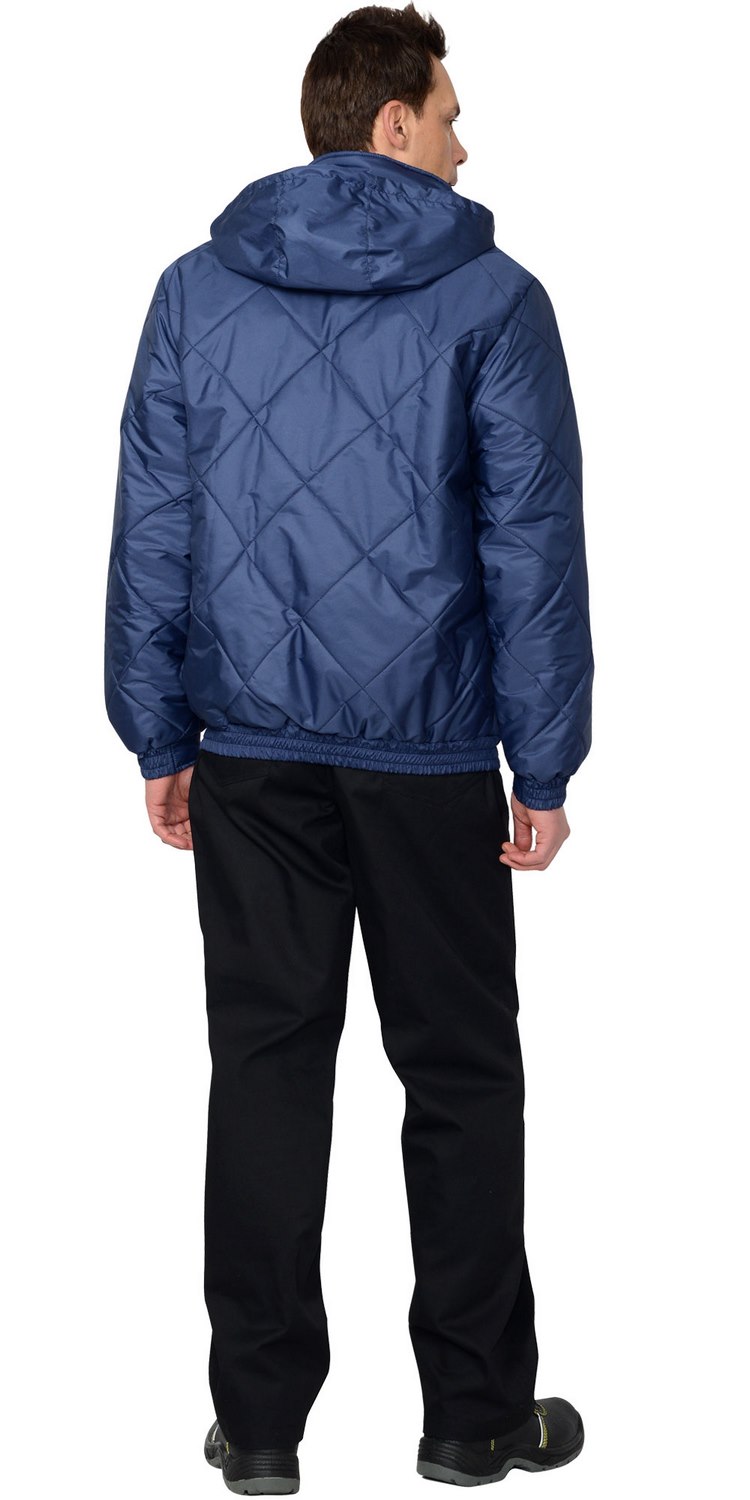 Куртка стёганная, на подкладке флис, прямого силуэта, с центральной бортовой застёжкой на "молнию", пристегивающимся капюшоном, воротник - "стойка", верхним прорезным карманом на "молнии" и нижними утеплёнными стёганными накладными карманами. Пояс и рукава частично стянутые резинкой.