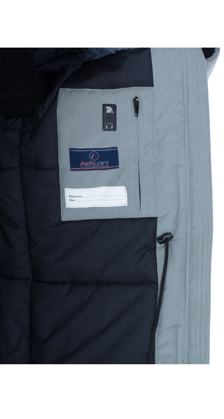 Капюшон съемный, на молнии, с двойной регулировкой объема по лицевому вырезу и по затылочной части на тесьму и кнопки. Съемная опушка на капюшоне из искусственного меха. Возможность увеличить глубину капюшона за счет отворота для защиты от метели и ветра.
