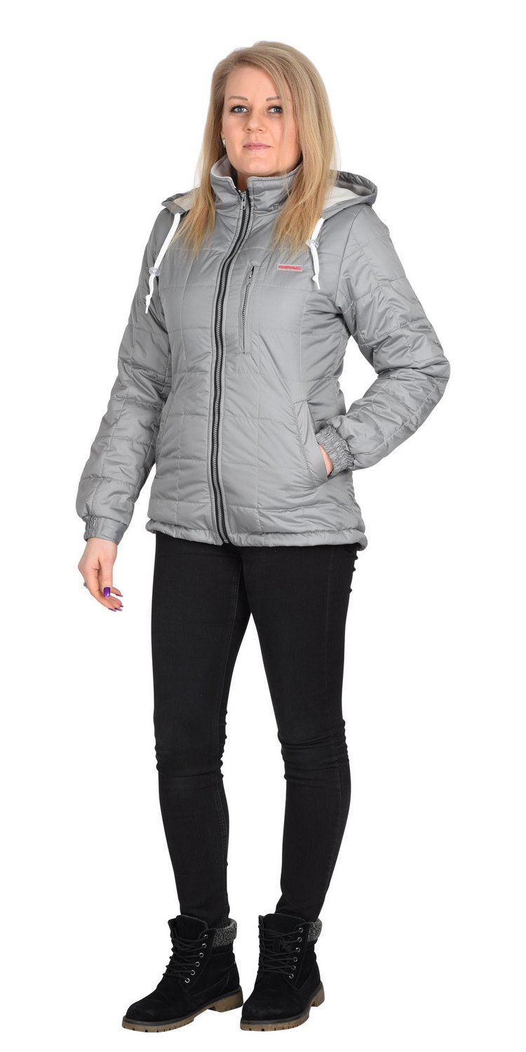 Куртка утеплённая стёганая, на подкладке "флис", со съёмным капюшоном, прямого силуэта, центральной застёжкой на тесьму "молния", воротником "стойка", верхним прорезным и нижними карманами с листочкой, рукава втачные с притачными манжетами, манжеты частично стянуты эластичной лентой.