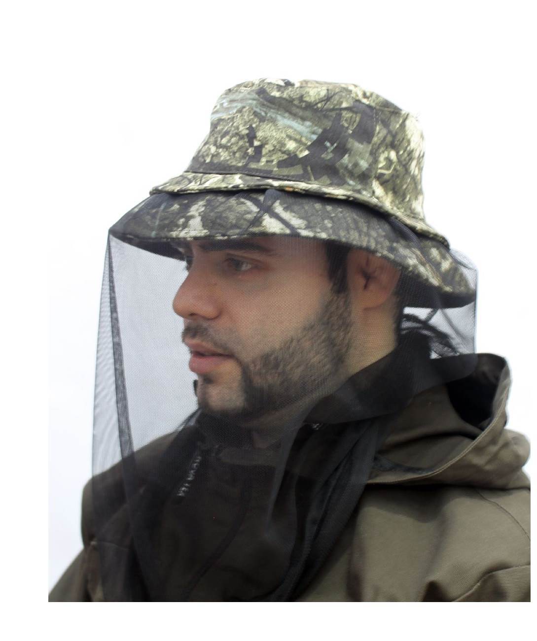 Длинная антимоскитная сетка защищает от насекомых шею и голову, сворачивается и прячется в специальное отделение в полях панамы. Предусмотрена утяжка по низу сетки.