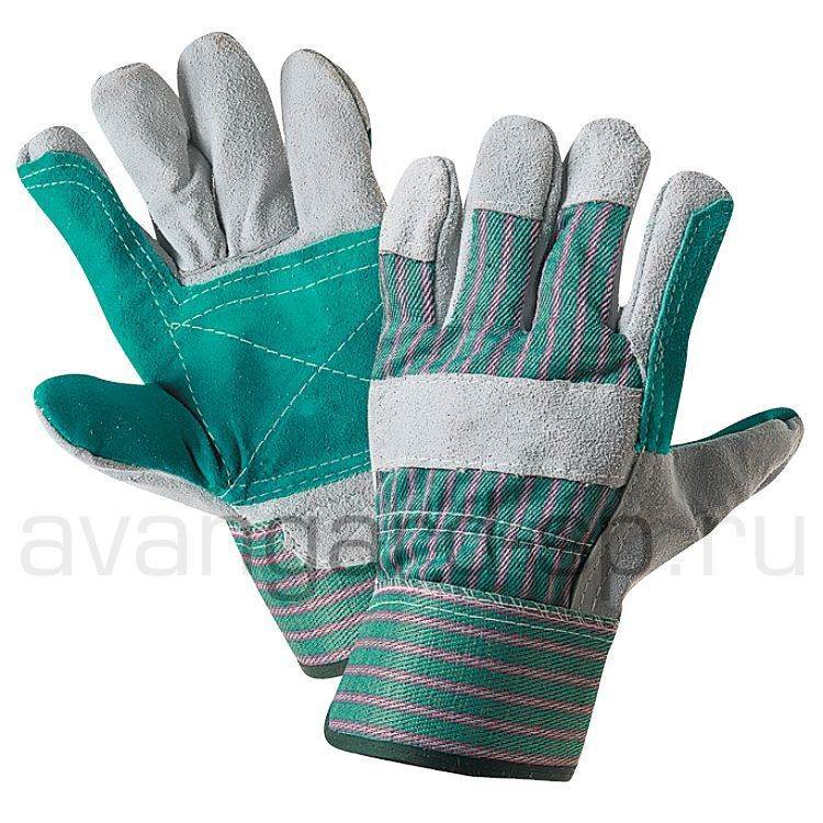 Перчатки комбинированные из качественного говяжьего спилка с хлопчатобумажной тканью.