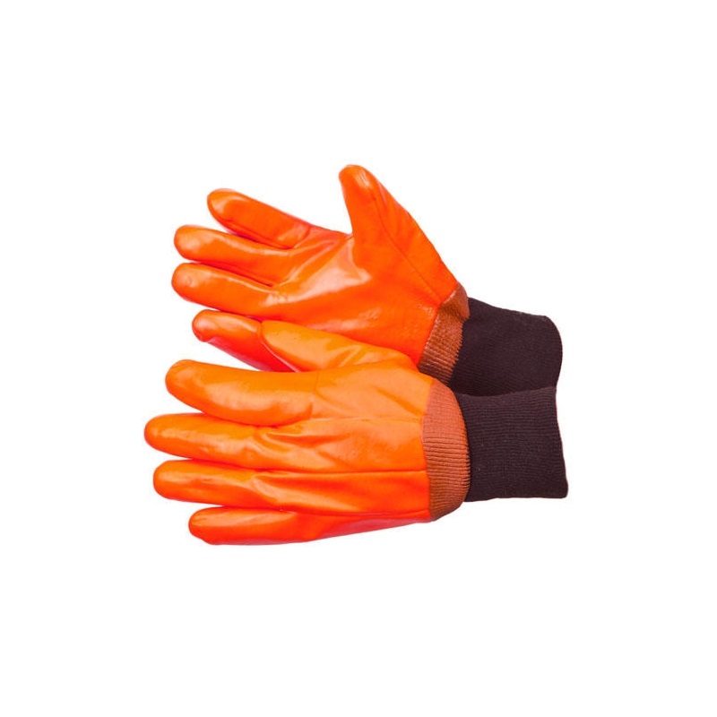 Перчатки для защиты от пониженных температур. Перчатки защитные швейные полностью покрытые ПВХ на трикотажной манжете, утепленные хлопчатобумажной тканью с начесом ивспененным полиуретаном.