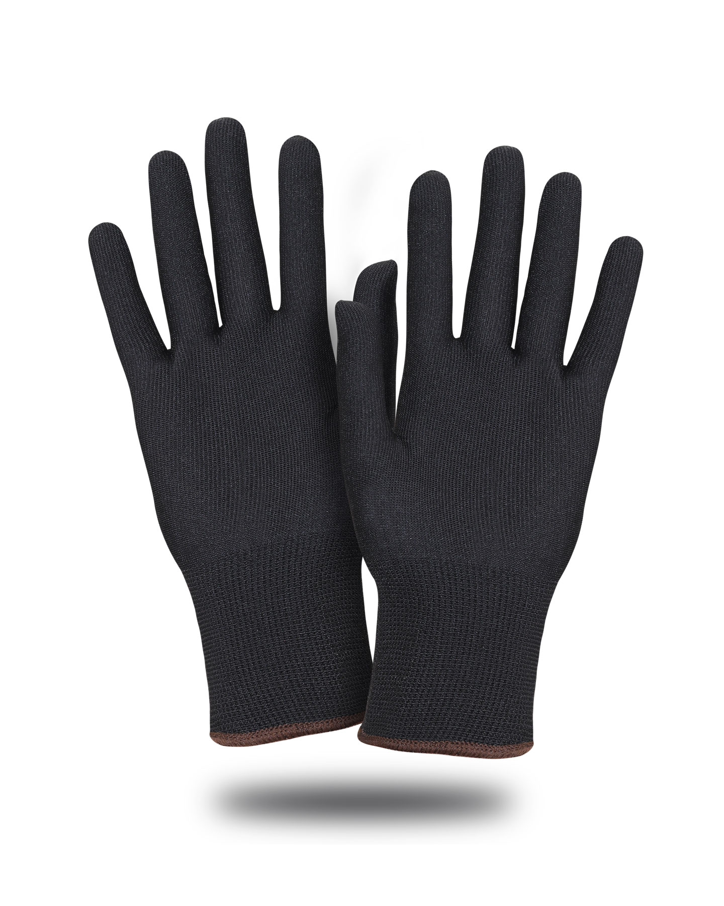 Перчатки из 100% нейлона, 13 кл. вязки, цвет черный. Отличная тактильная чувствительность, отличная воздухопроницаемость, широкий диапазон применения. Цветной оверлок.