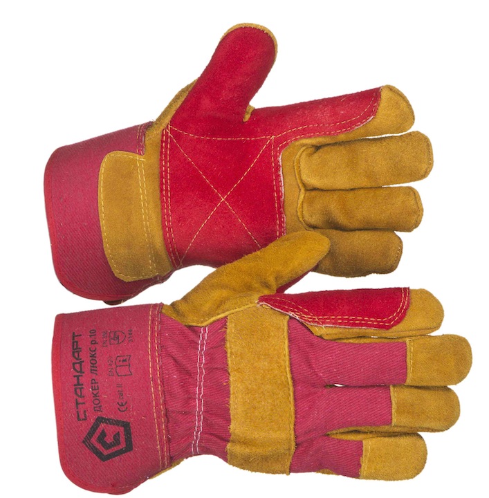 Перчатки спилковые комбинированные усиленные "ДОКЕР-ЛЮКС", серия "СТАНДАРТ"